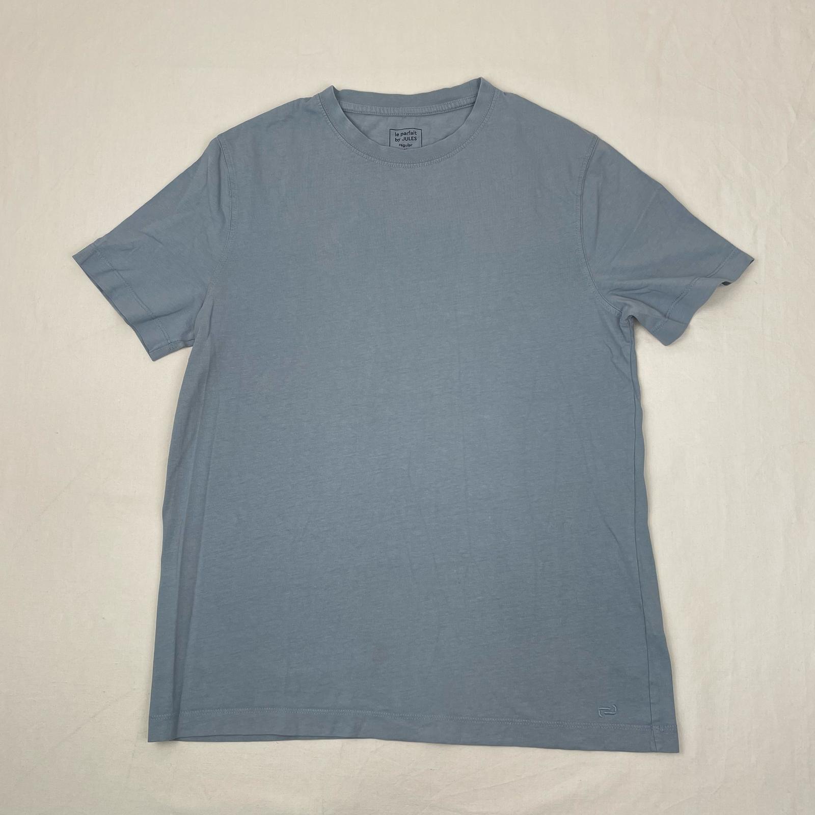 Autres commentaires : T-shirt manches courtes uni bleu gris clair, logo brodé en ton sur ton en bas devant, Gamme Le Parfait by Jules. Taille M regular.