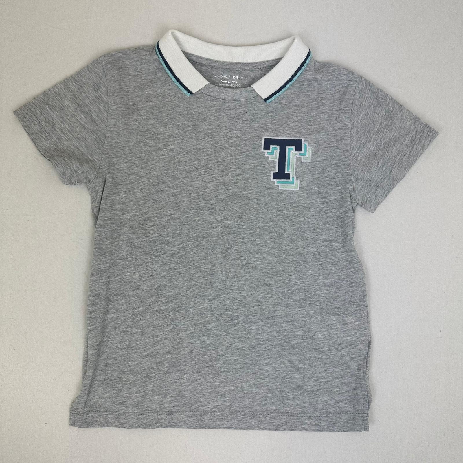 Autres commentaires : T-shirt manches courtes, col polo bleu avec motif un grand T.