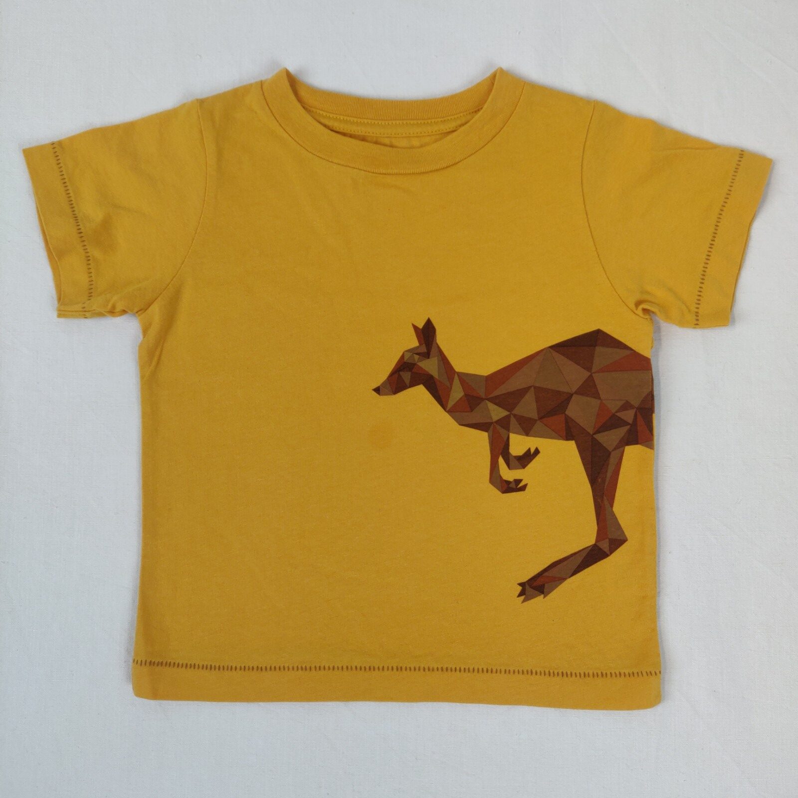 Autres commentaires : T-shirt à manches courtes – orange. Motif à cheval entre le devant et l’arrière kangourou marron.