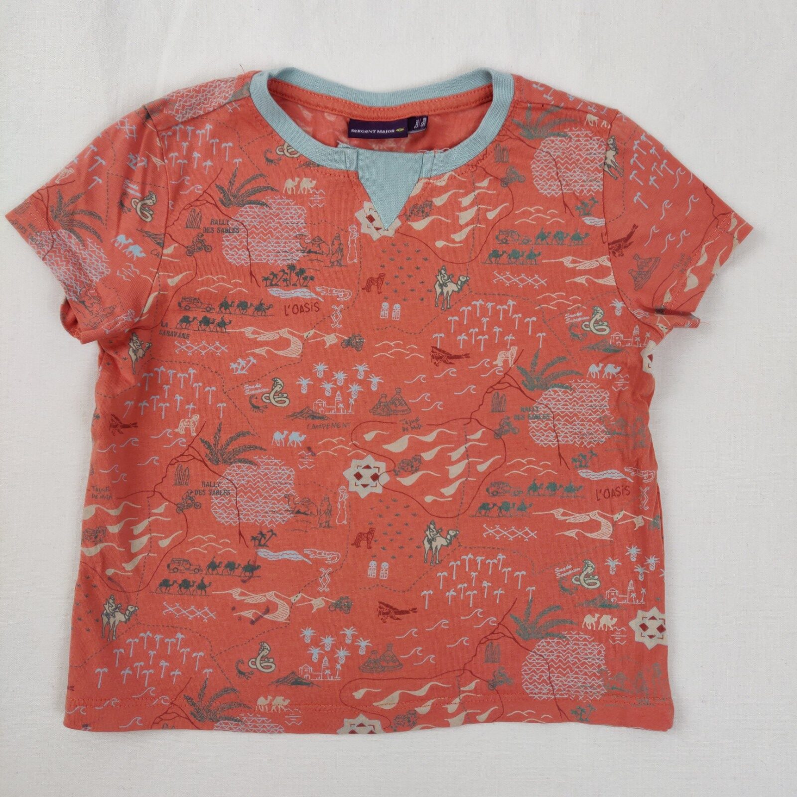 Autres commentaires : T-shirt manches courtes orange avec motif savane.