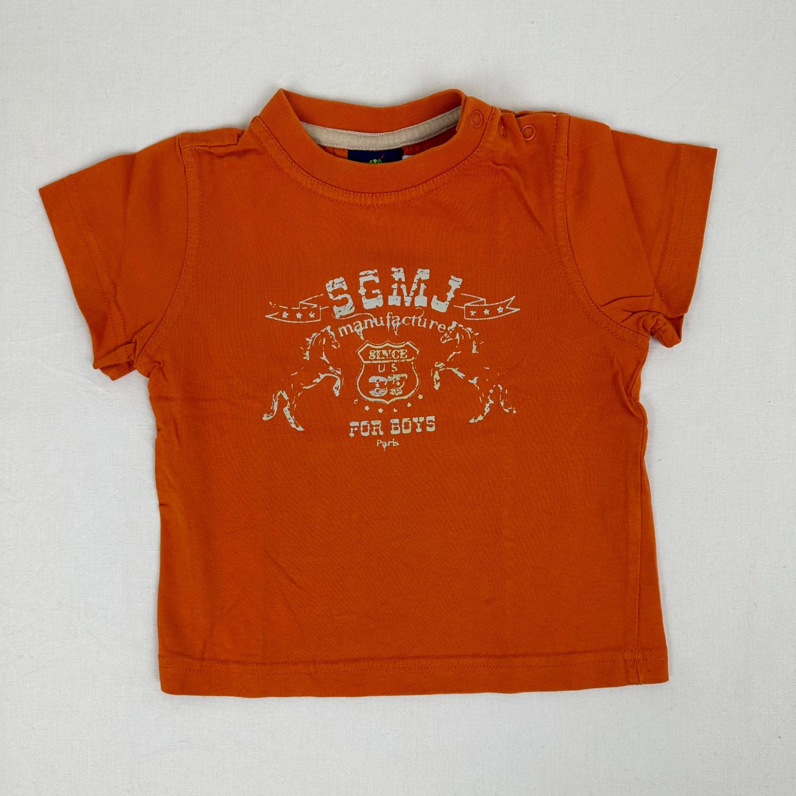 Autres commentaires : T-shirt manches courtes avec motif de cheval et une fermeture à l’épaule par boutons pressions.