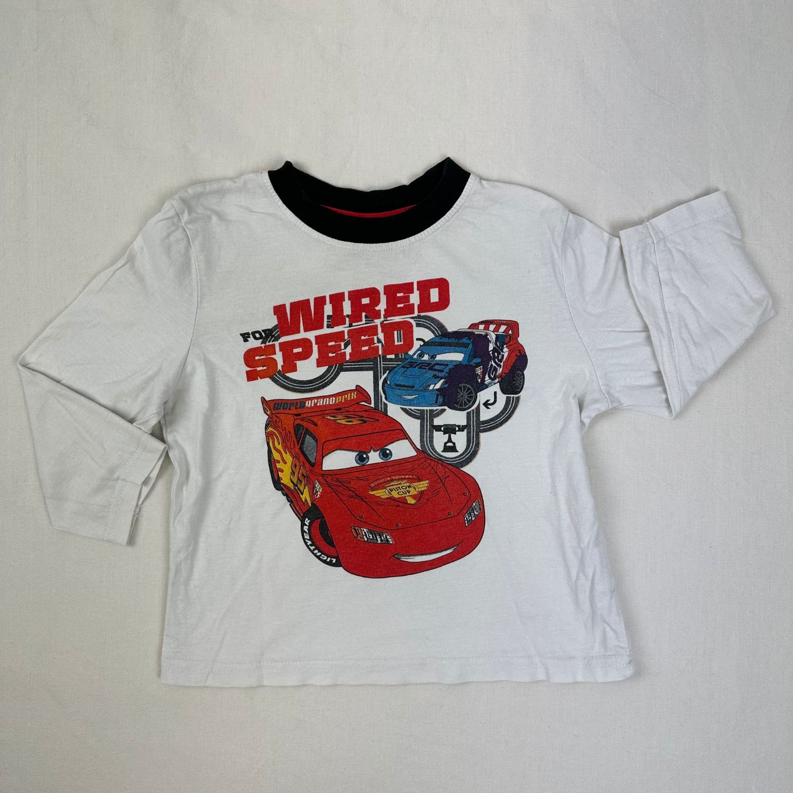 Autres commentaires : T-shirt manches longues blanc avec motif centrale « Wired Speed »en rouge avec col noir.