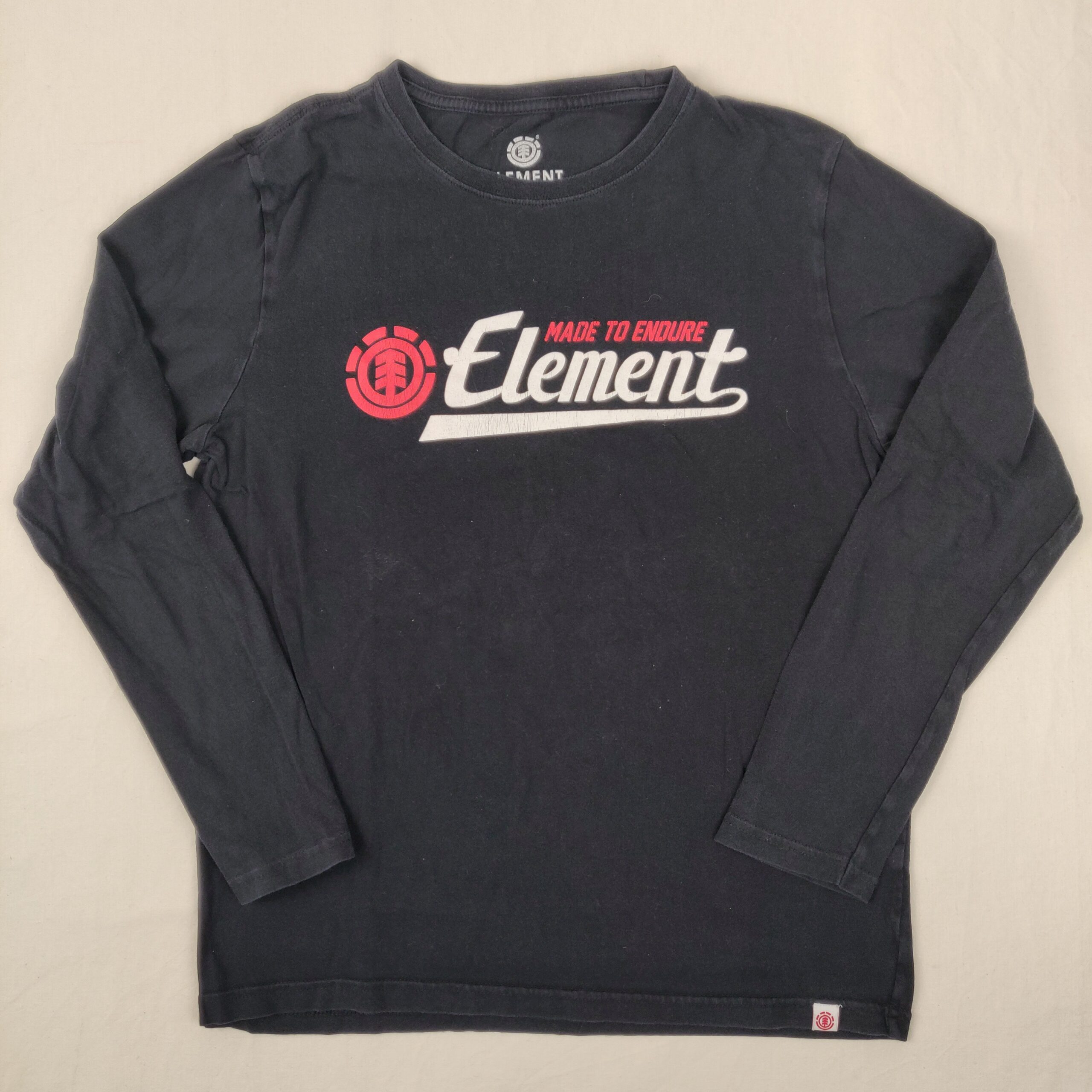 Autres commentaires : T-shirt manches longues Element noir avec logo et signature de marque devant. Ecritures vintages à effet craquelé.