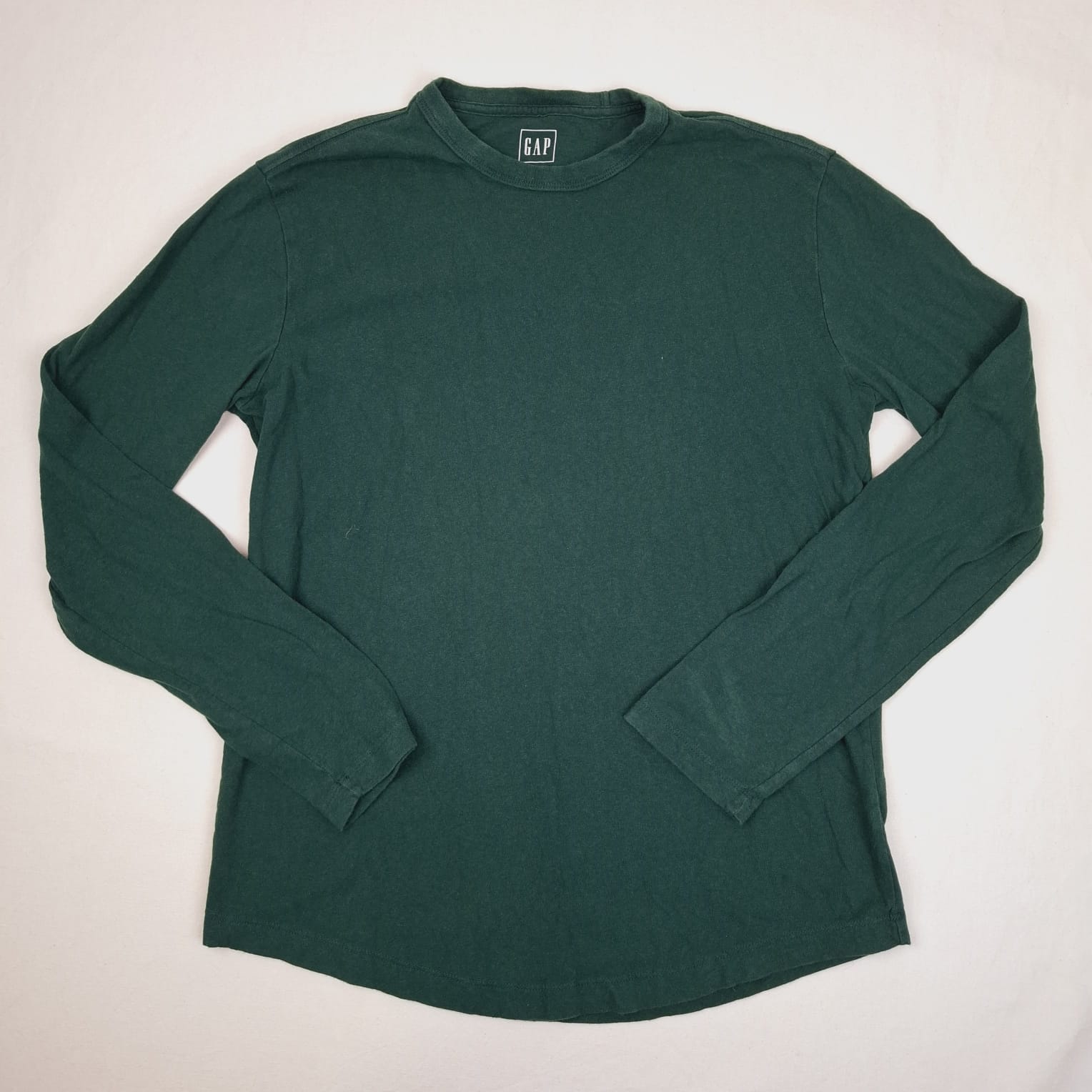 Autres commentaires : T-shirt uni vert sapin à manches longues, col rond.