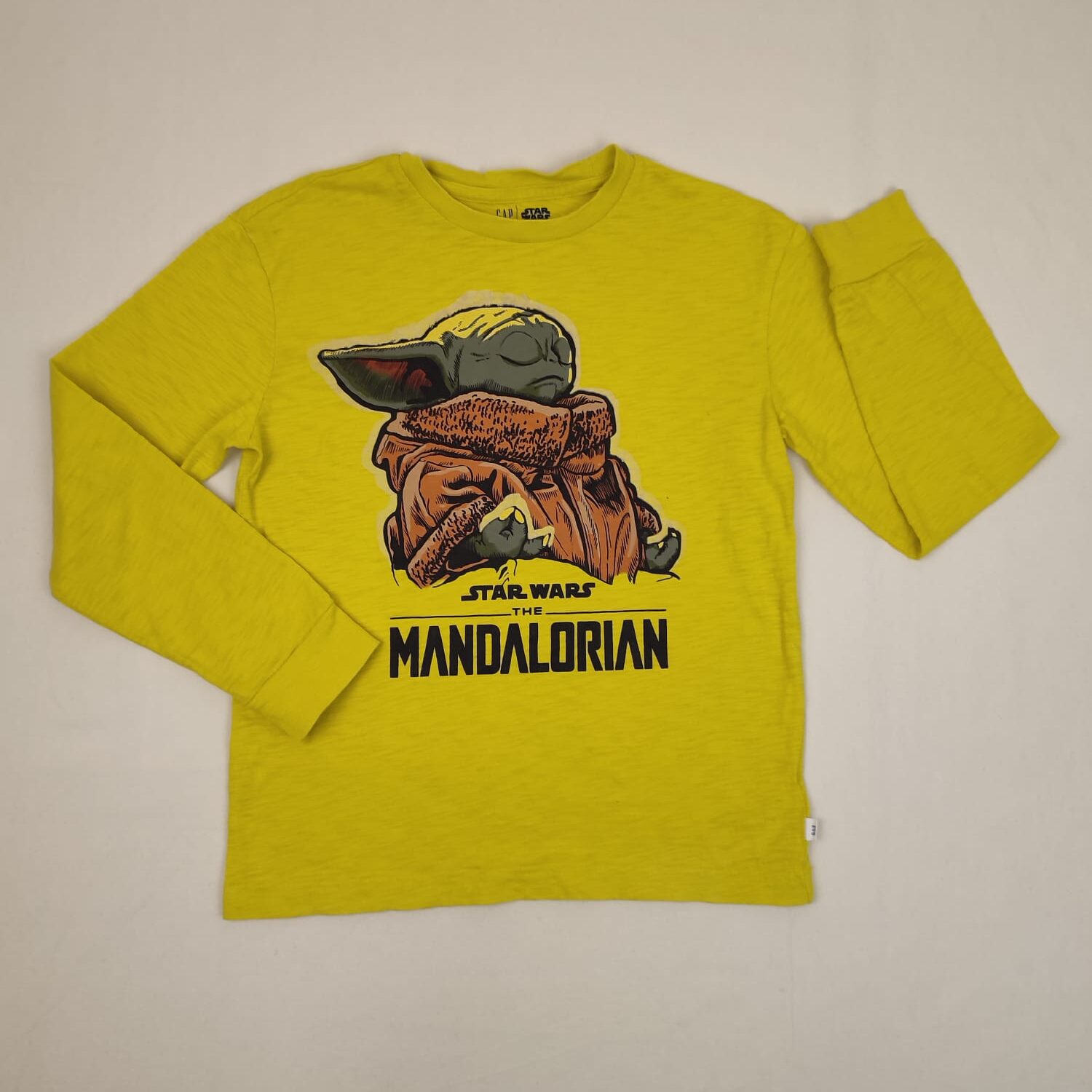 Autres commentaires : T-shirt manches longues jaune, motif bébé Yoda avec inscription »Star Wars » « The Mandalorian » sur le devant.