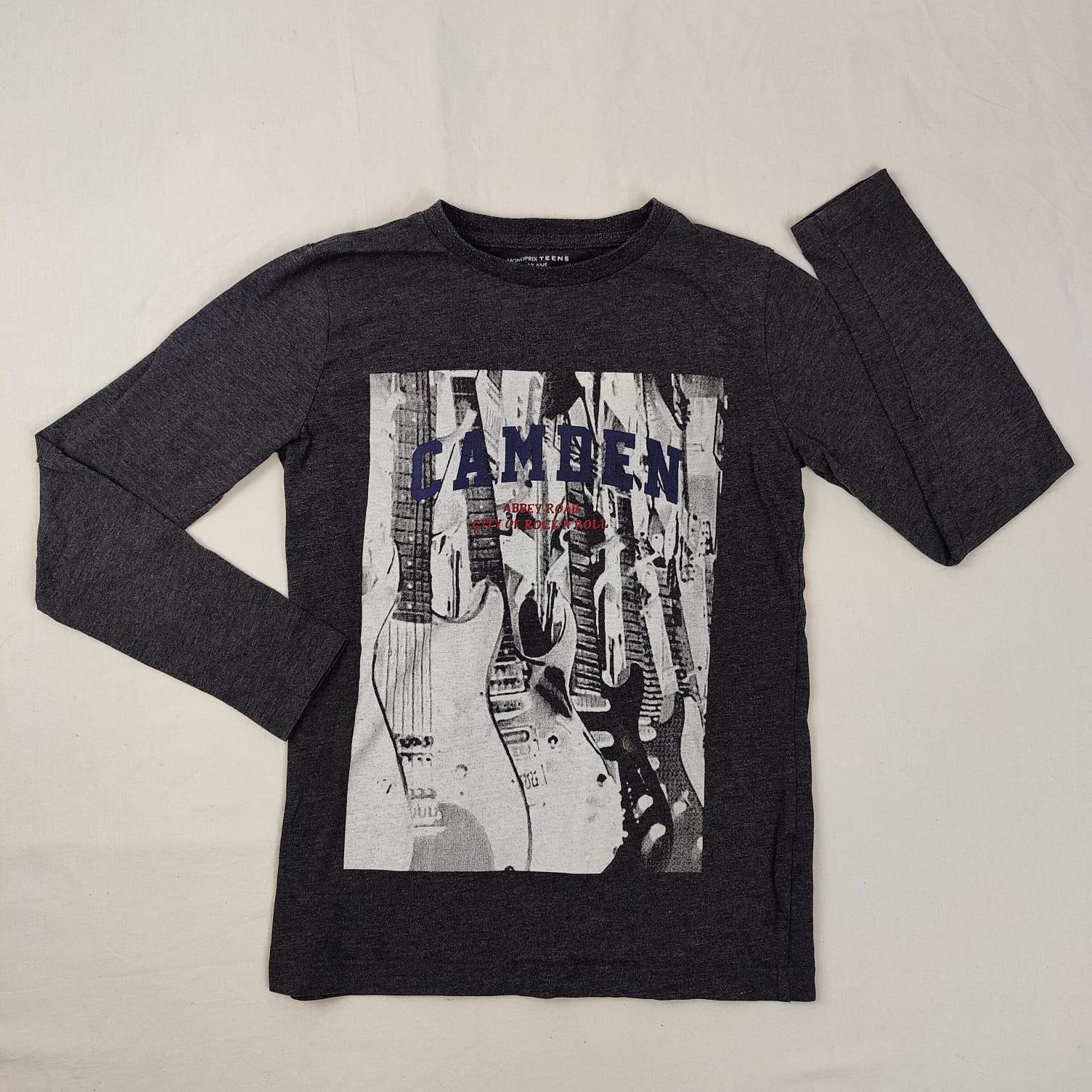 Autres commentaires : 40% polyester, t-shirt manche longue anthracite imprimé « CAMDEN » et guitare