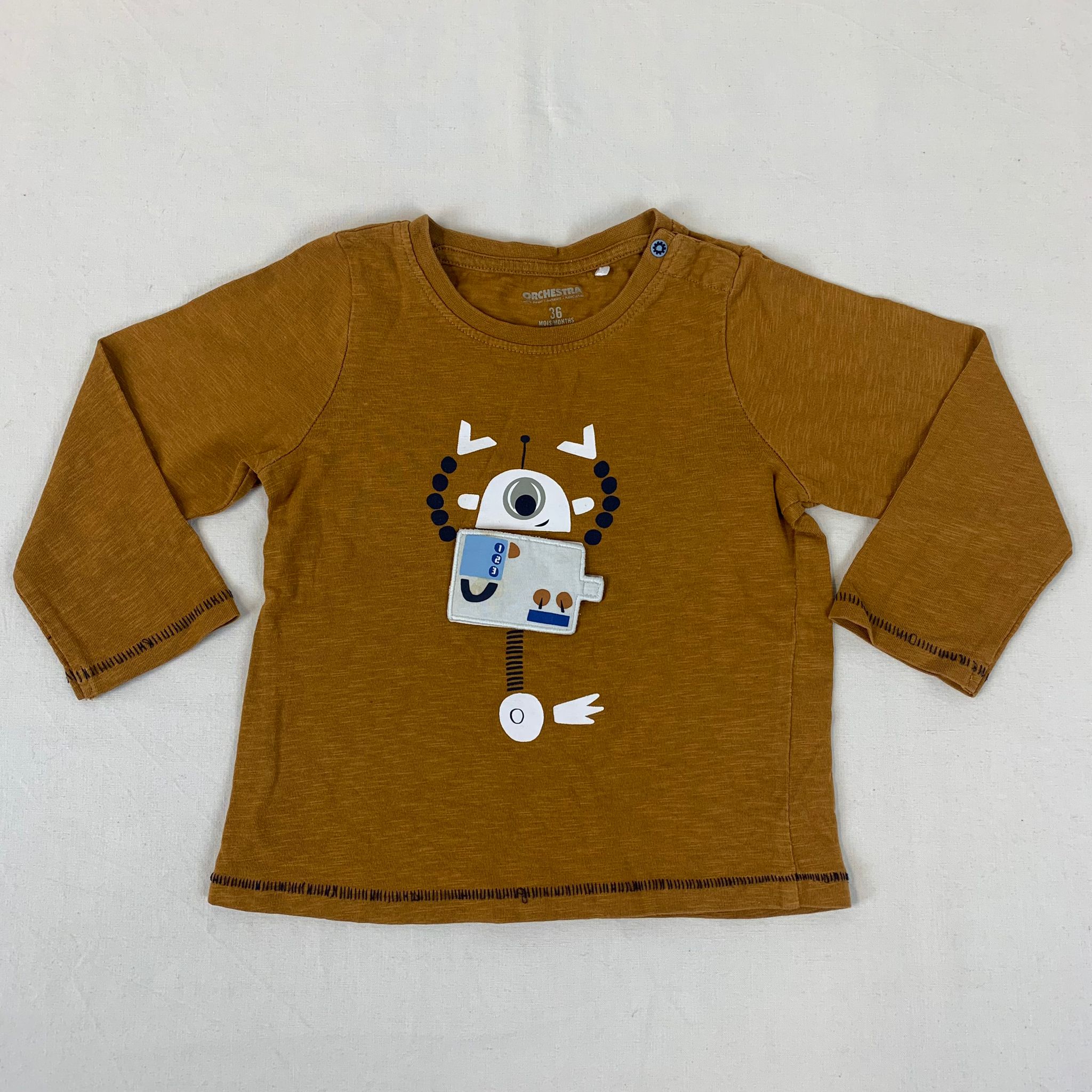 Autres commentaires : T-shirt maches longues marron avec boutons pression aux épaules.