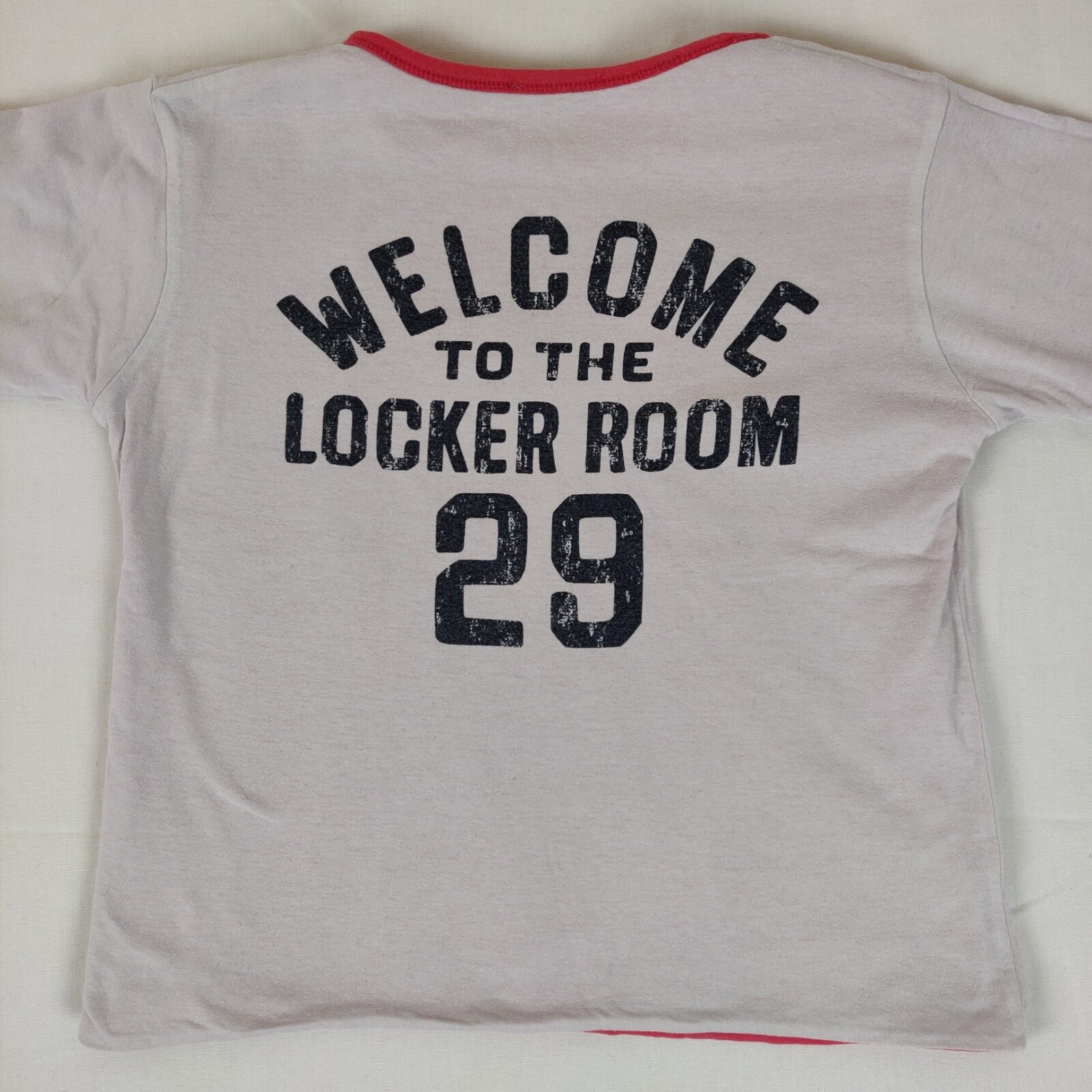 Autres commentaires : T-shirt à manches longues réversible (taille estimée 8 ans) – rose avec inscriptions blanches « Sports Locker P.PN-Boys 29. It’s time to change…! » Ecusson de la marque cousue à la taille. Côté réversible blanc avec inscription rose « P.PN Boys Locker n°29. Ready, set, go! ».