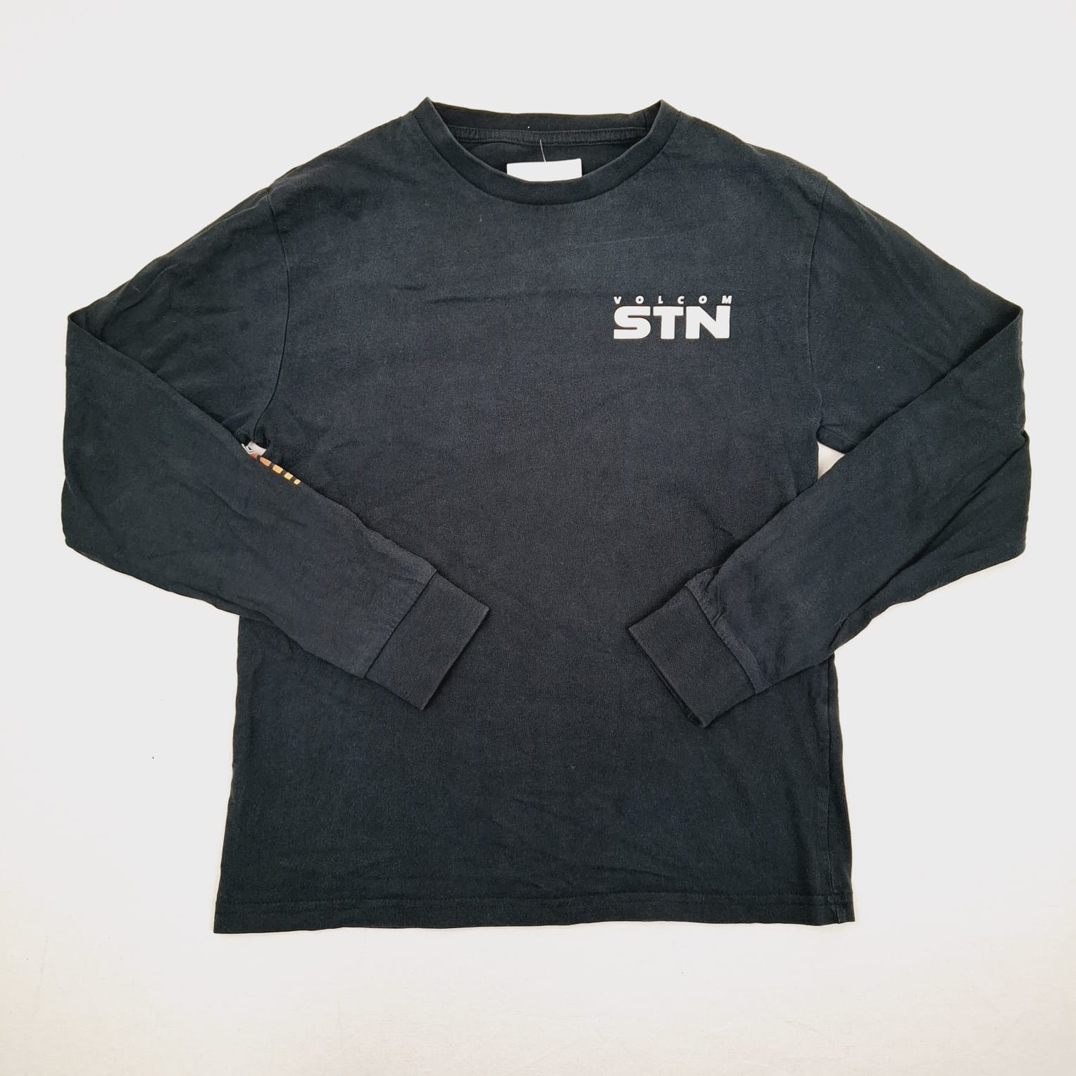 Autres commentaires : T-shirt noir avec inscription marque « Volcon STN » sur l’avant et en grand sur l’arrière du vêtement, inscription information à l’intérieur du col éffacé