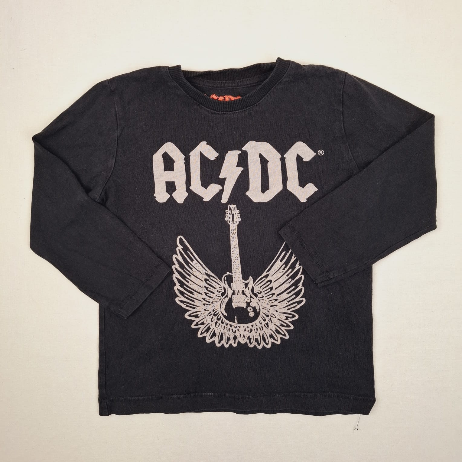 Autres commentaires : T-shirt noir à manches longues, motif guitare et inscription ‘AC/DC’ devant, col rond cotelé.
