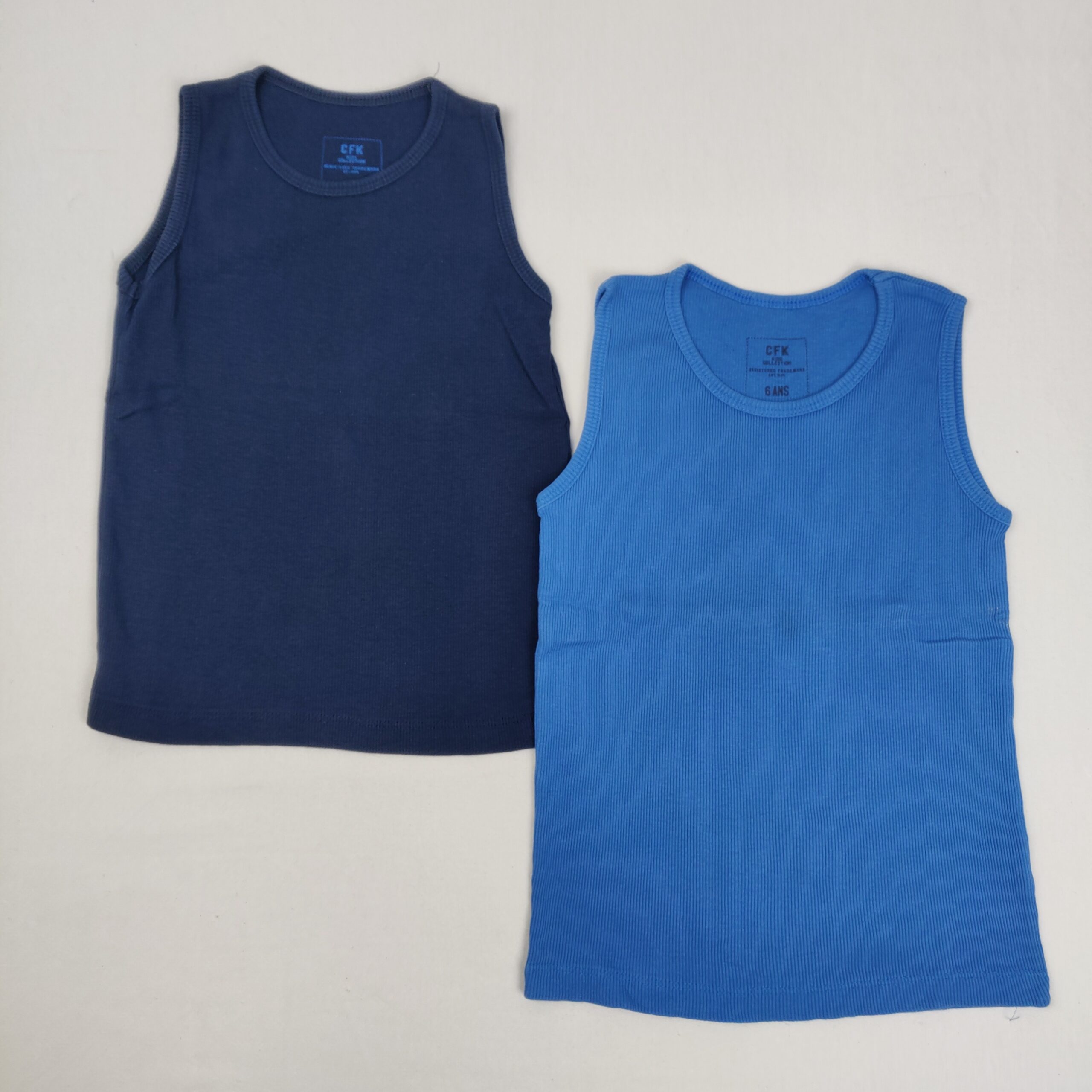 Autres commentaires : Lot de 2 t-shirts unis sans manches jersey côtelé : 1 bleu marine et bleu clair