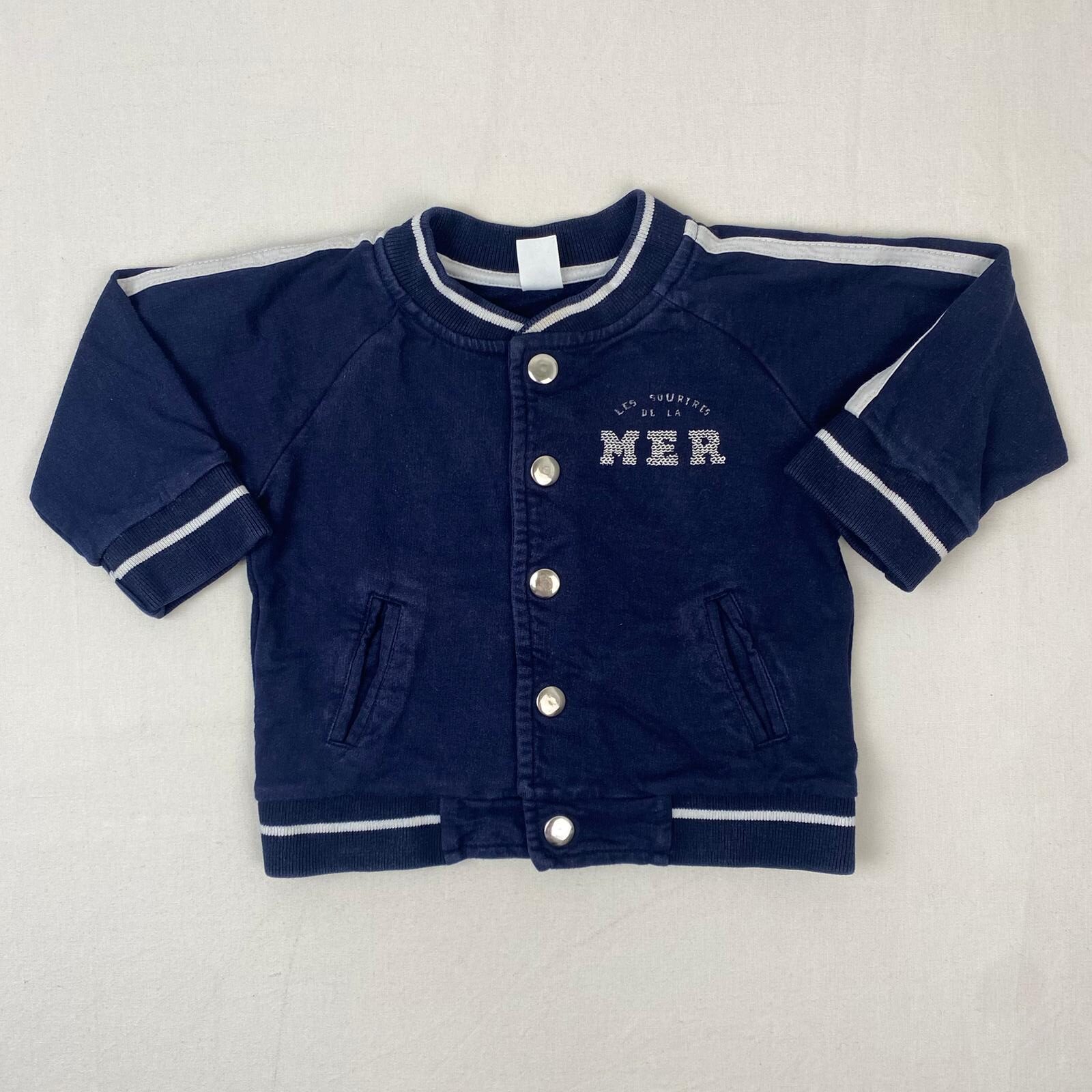Autres commentaires : Veste gilet Teddy bleu marine, fermeture devant par boutons pression, devant inscription « Les sourires de la mer ».