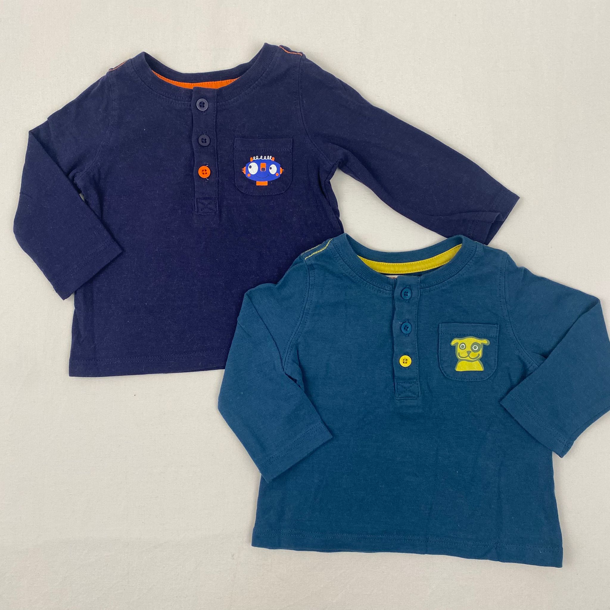 Autres commentaires : Lot de 2 t-shirts manches longues avec boutons à l’avant et poche au niveau du cœur. L’un est vert, l’autre bleu marine.