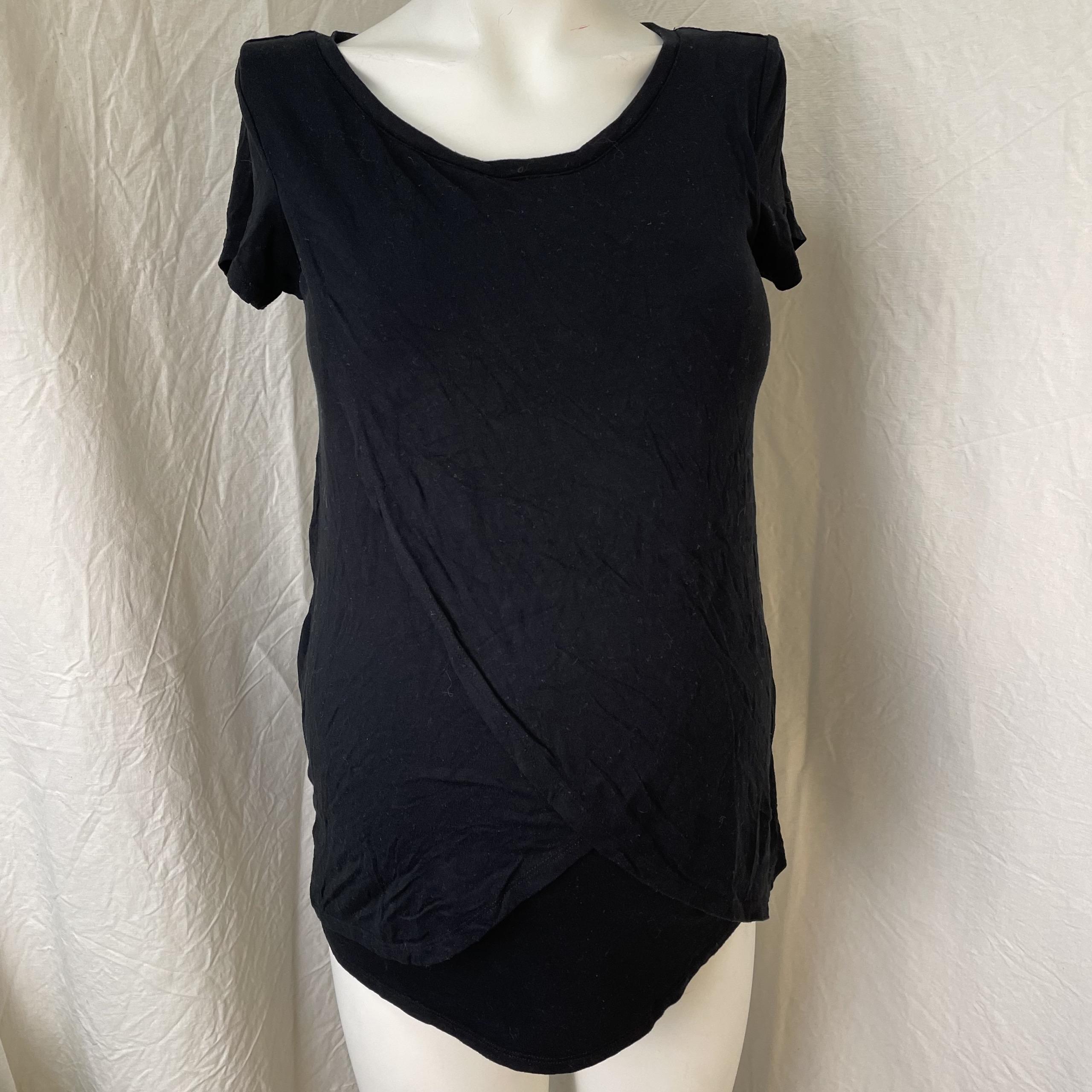 - T-shirt manches courtes noir de grossesse, ouverture par pans devant, idéale également pour un allaitement confortable.