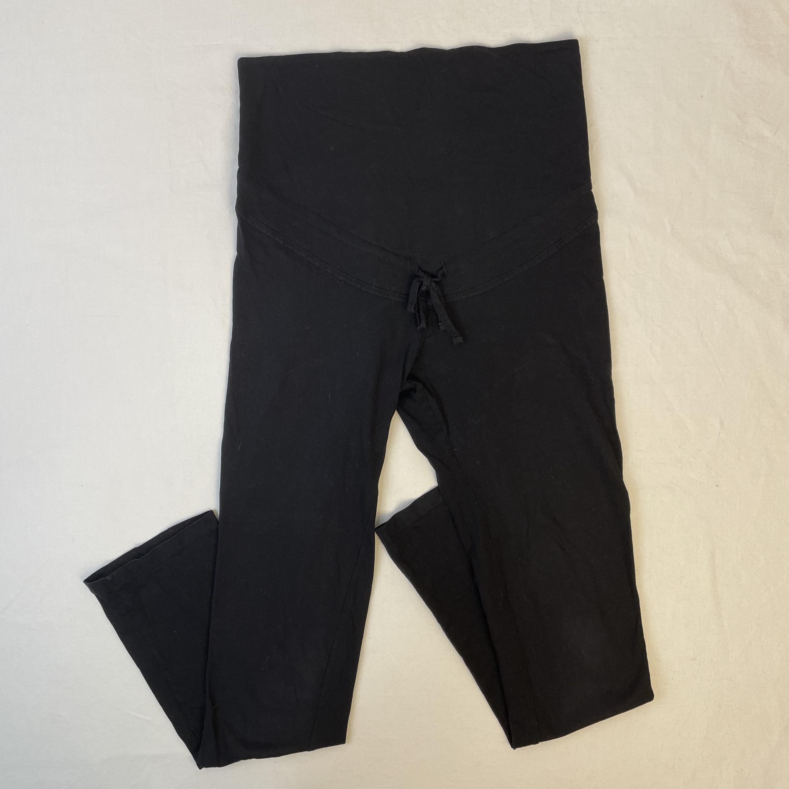 - Leggings noir, avec ceinture large élastiquée et lanières à nouer devant.