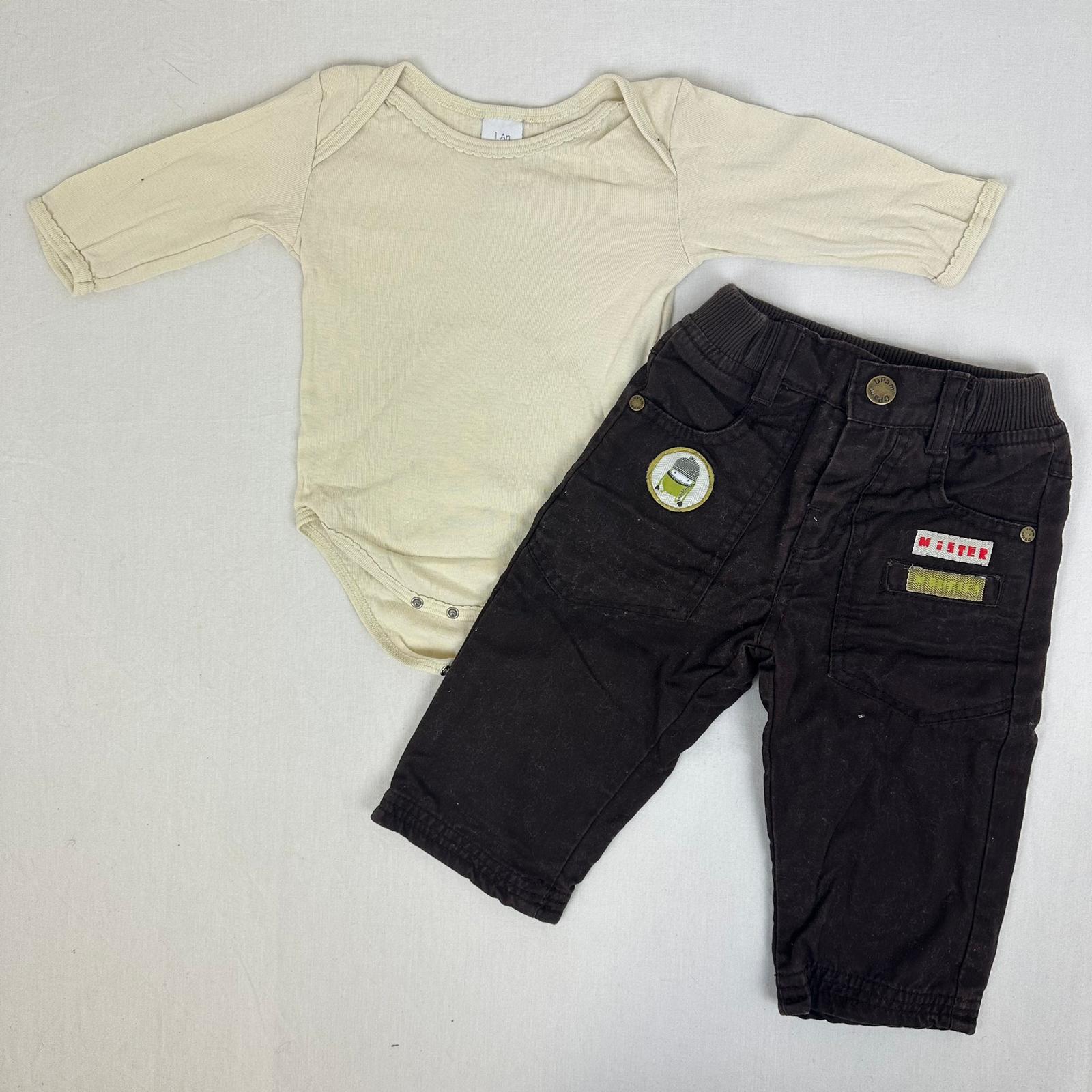 Autres commentaires : Body Influx jaune manches longues. Pantalon Du Pareil au même marron avec taille élastiquée.