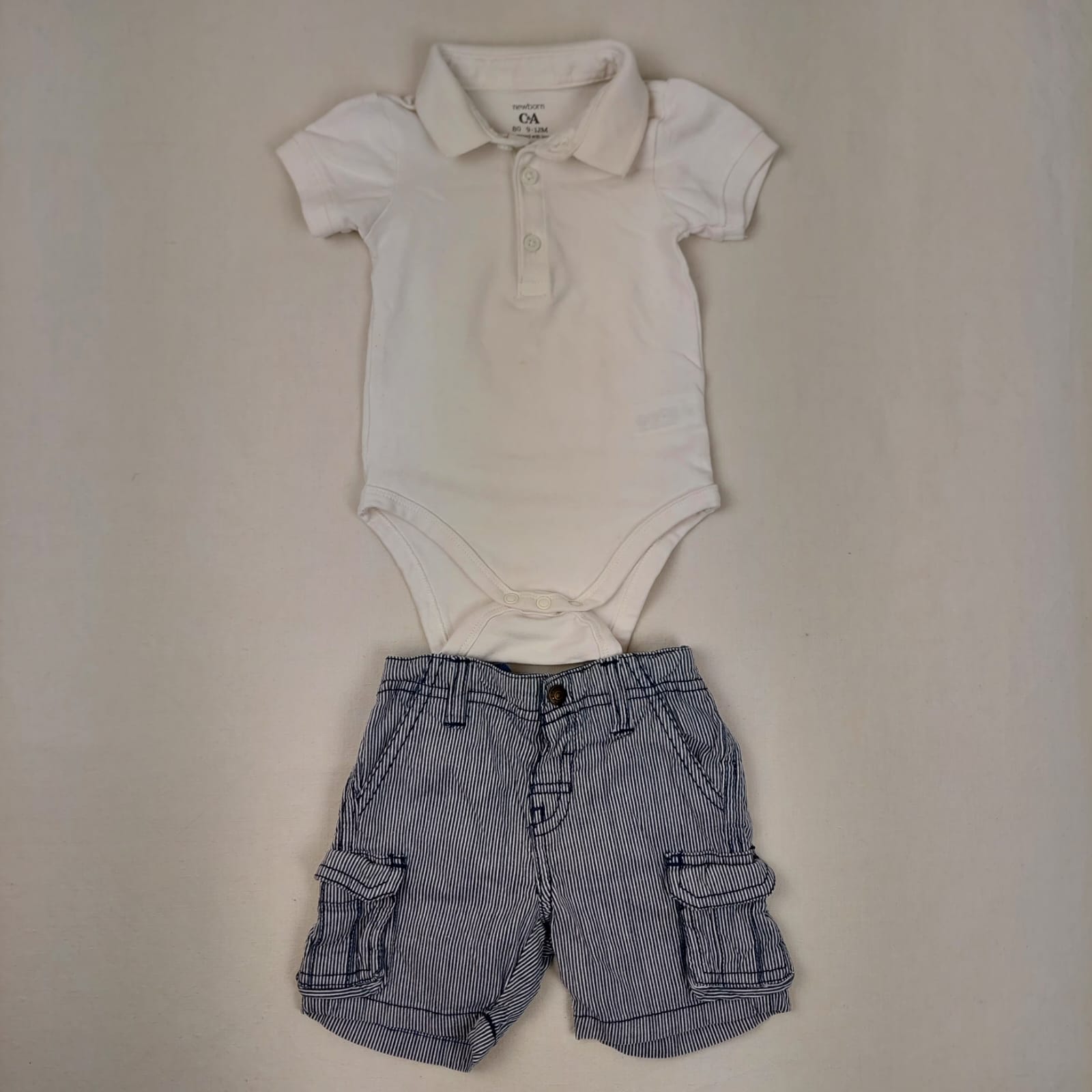 Autres commentaires : Body polo blanc manches courtes, short Obaïbi rayé bleu et blanc