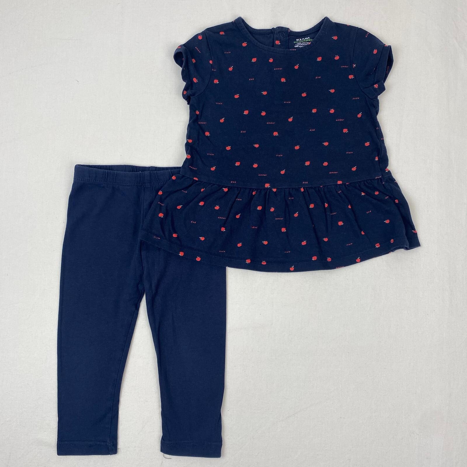 Autres commentaires : 5% élasthanne, Ensemble 2 pièces : – Une robe noire avec des motifs de pommes rouges, col rond, manches courtes, fermeture par boutons pressions au dos, – Un pantalon noir, taille élastique