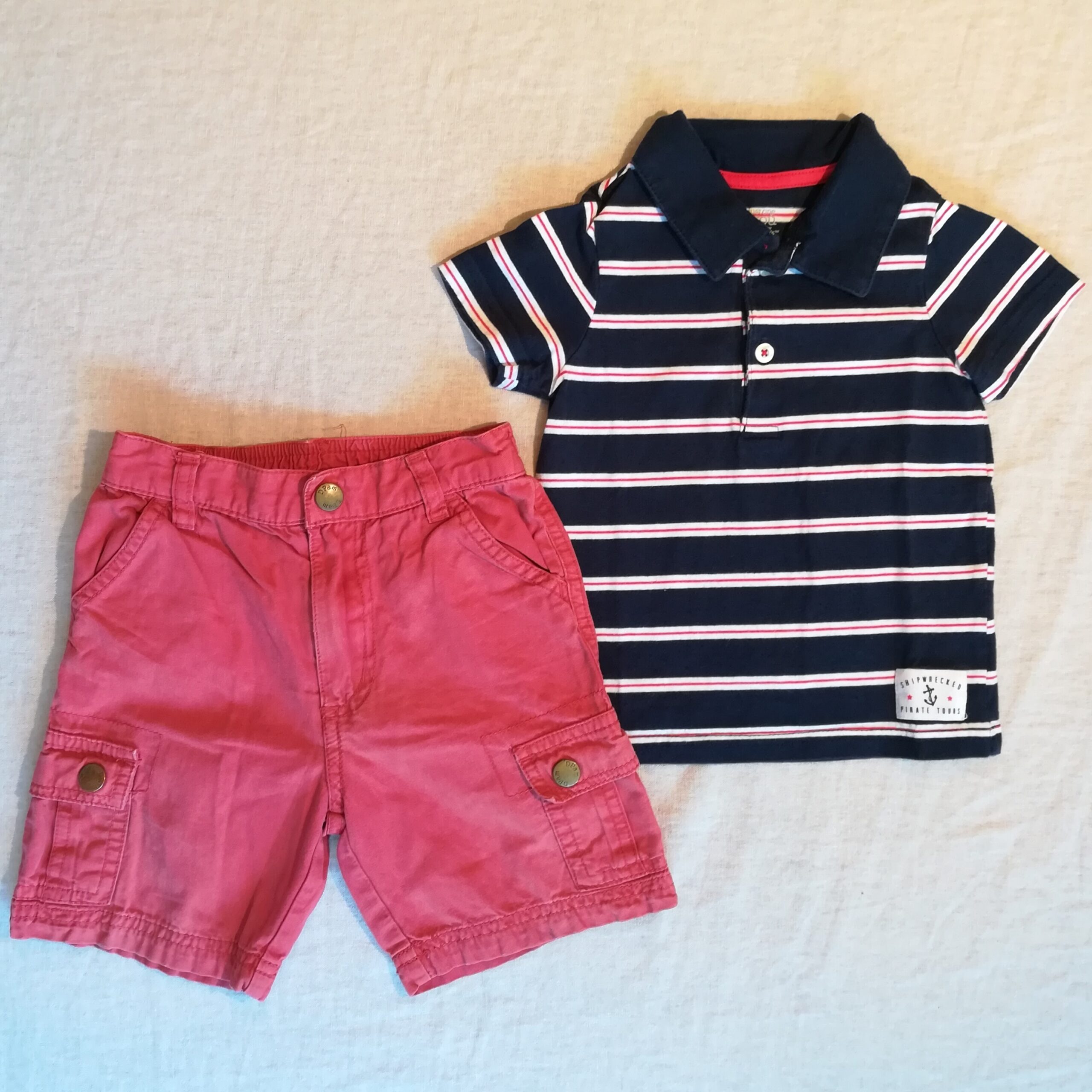Autres commentaires : Polo Carter’s excellent état et bermuda short Du Pareil au Même en bon état mais traces d’usure aux fesses -non valorisé-.