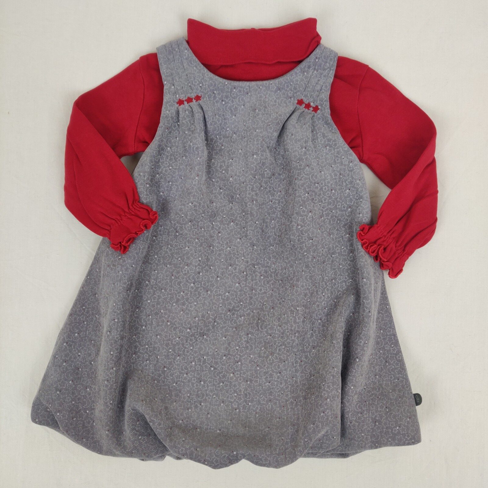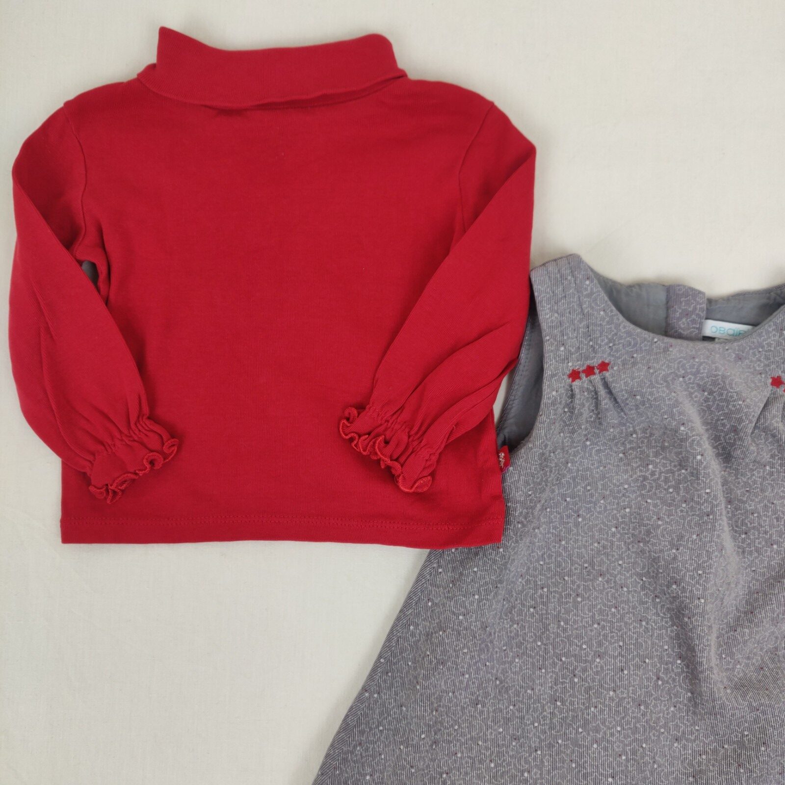 Autres commentaires : 12% nylon. Robe grise Obaibi sans manches etoilée en blanc et une fermeture en zip au dos.100% coton: t-shirt Gap col roulé rouge.
