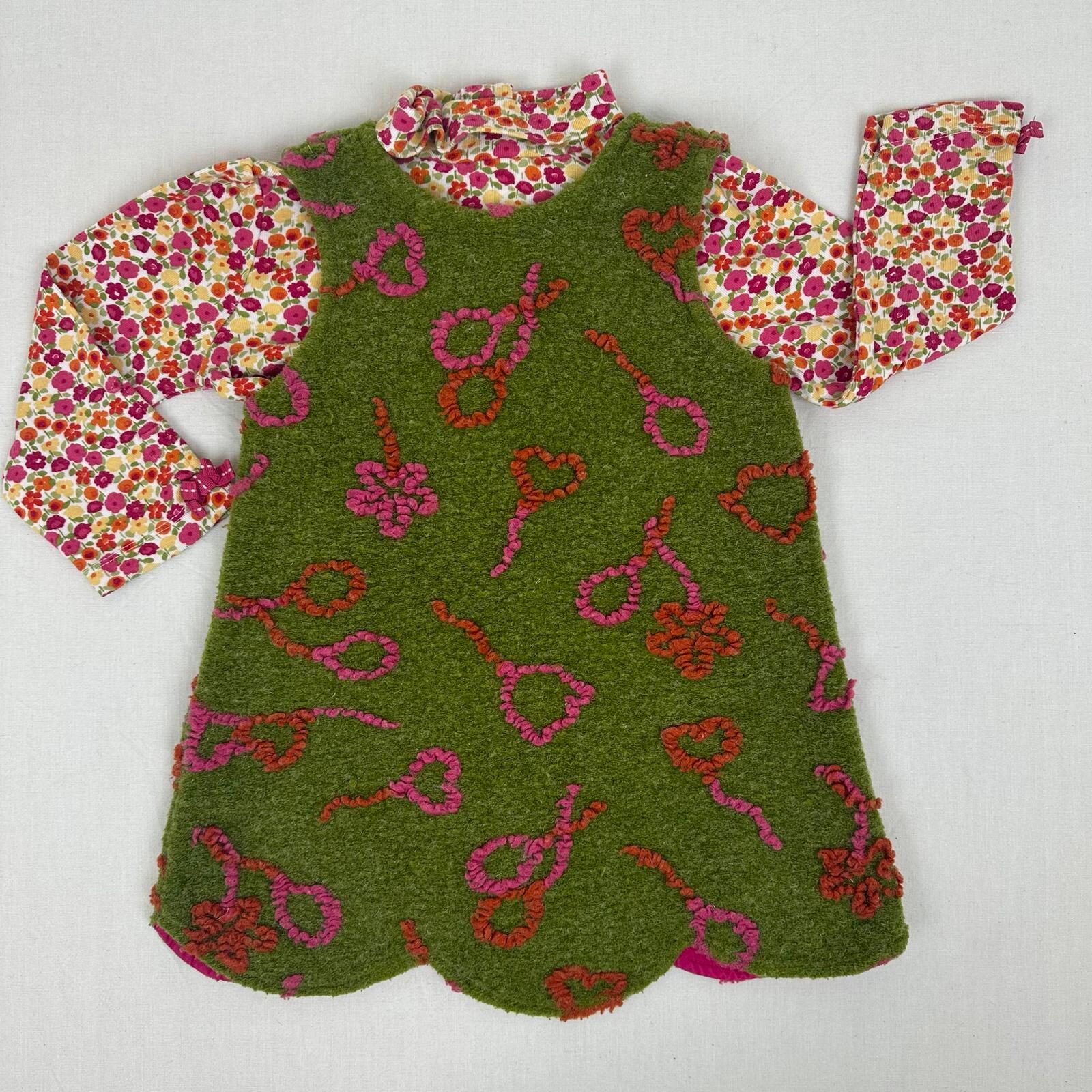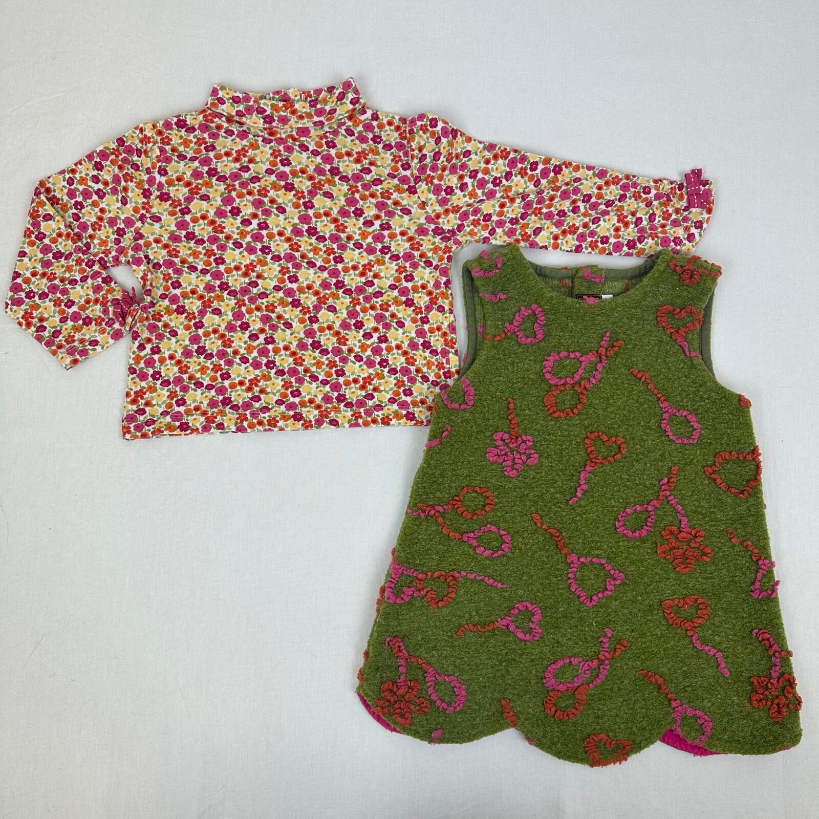 Autres commentaires : 49% acrylique, 33% laine et 18% polyester. Robe sans manches verte Mini Tribuavec motif orange et rose et une fermeture au dos par boutons. 100% coton. T-shirt col roulé multicolores fleuri Gymboree avec une fermeture au dos par boutons pression.