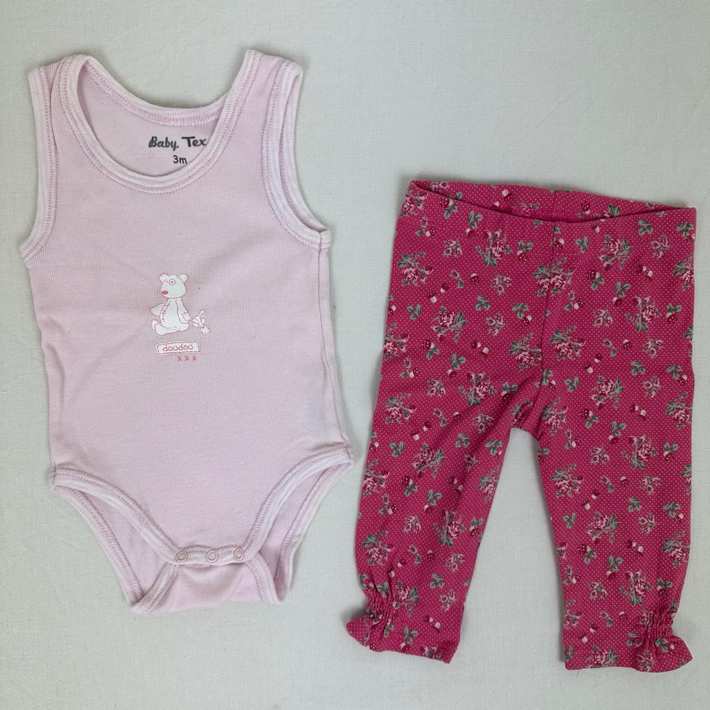 Autres commentaires : Body rose Tex sans manches. Legging Sergent Major rose fleuri avec taille élastiquée.
