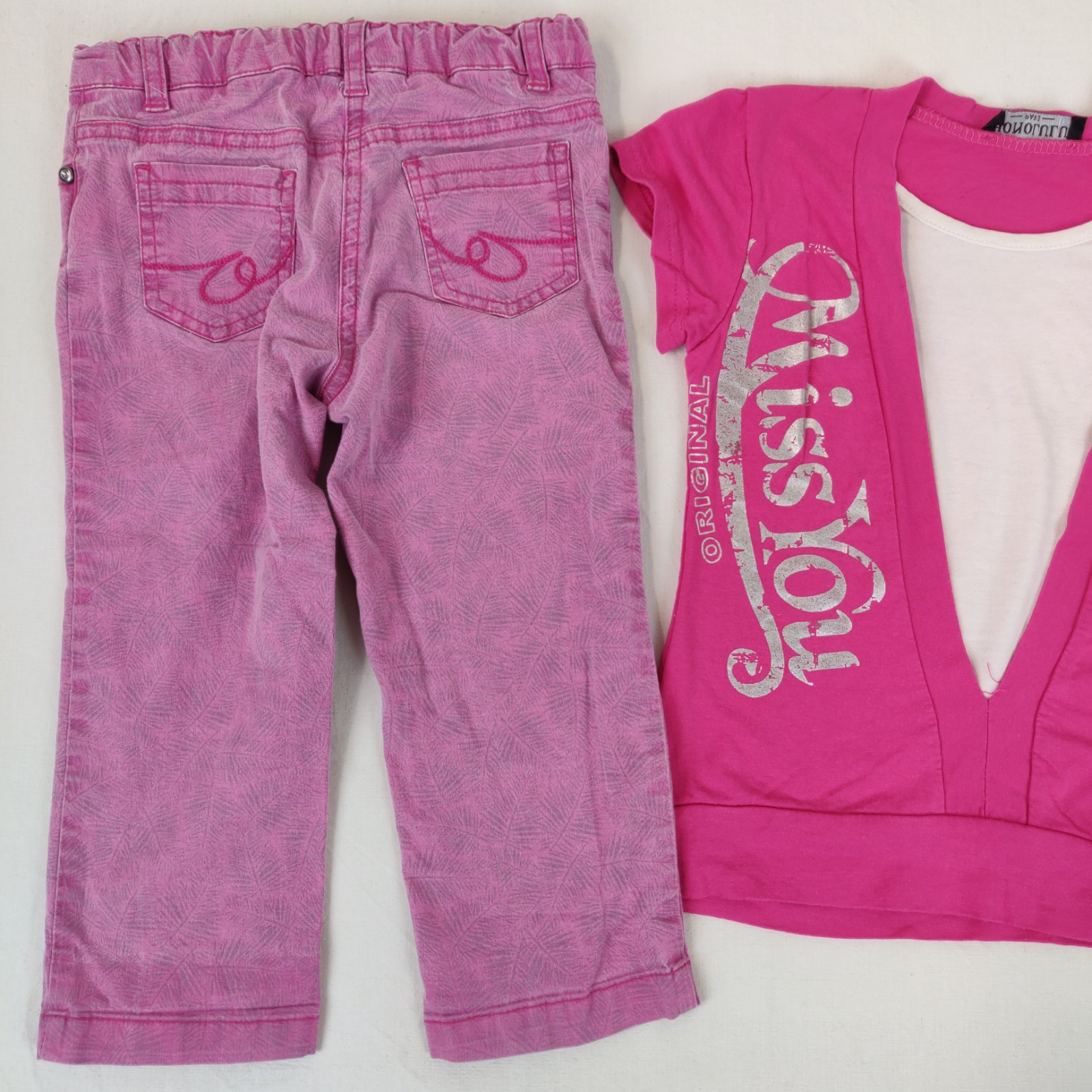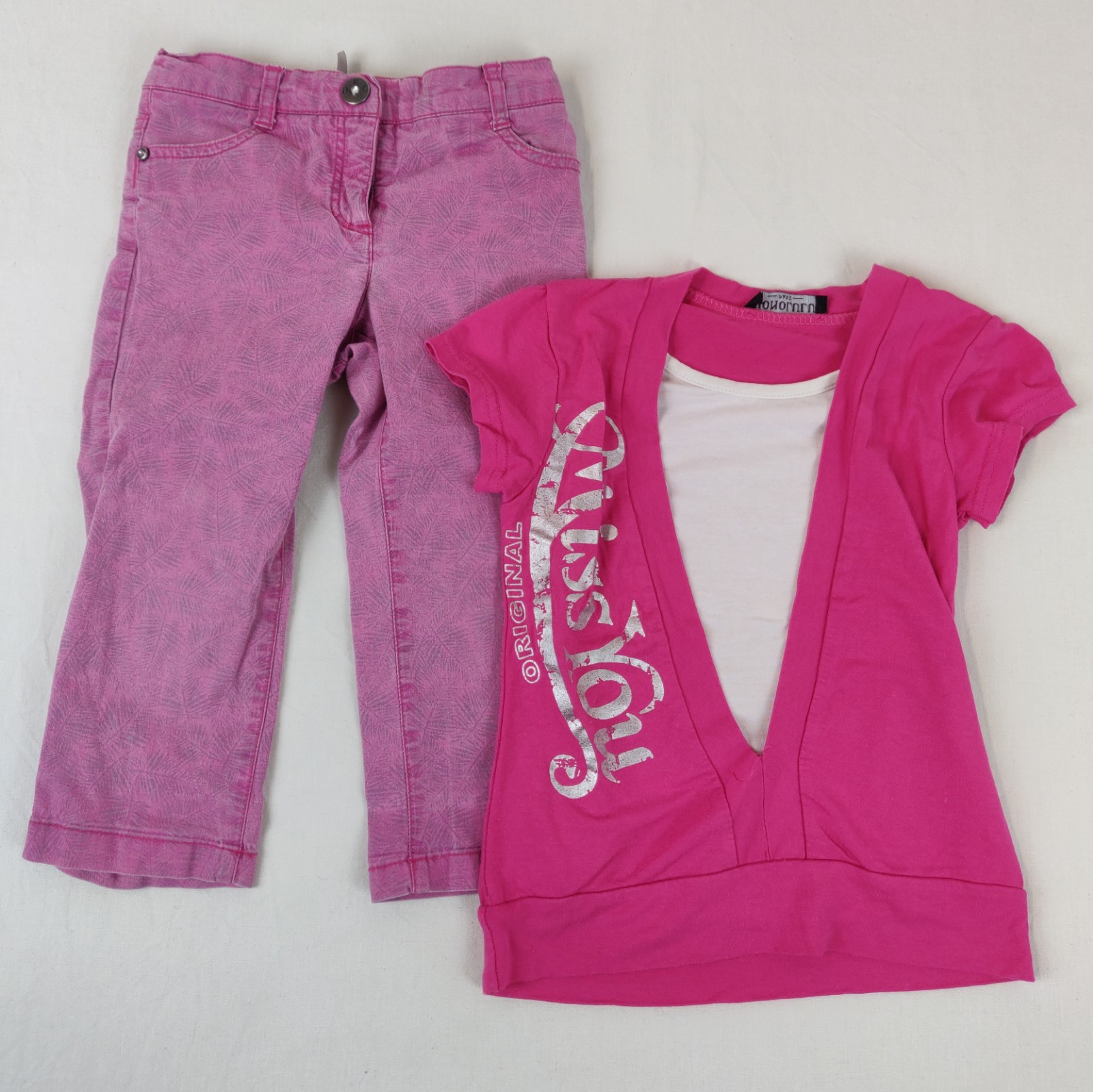 Autres commentaires : Pantalon rose ajustable à la taille, tunique manches courtes.