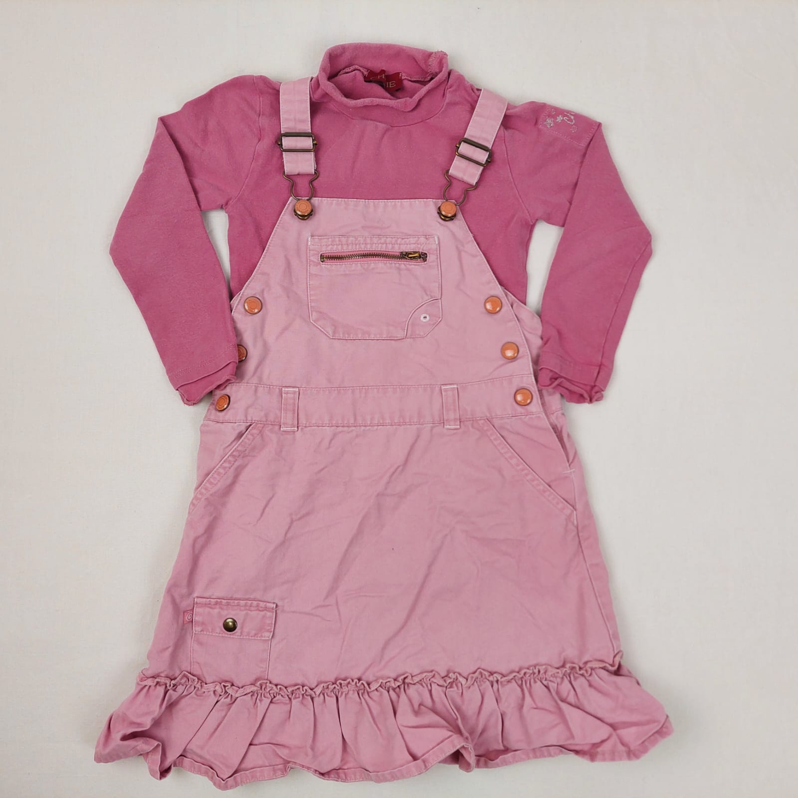 Autres commentaires : T-shirt manches longues Chipie rose uni, robe salopette Tex rose , bas volanté