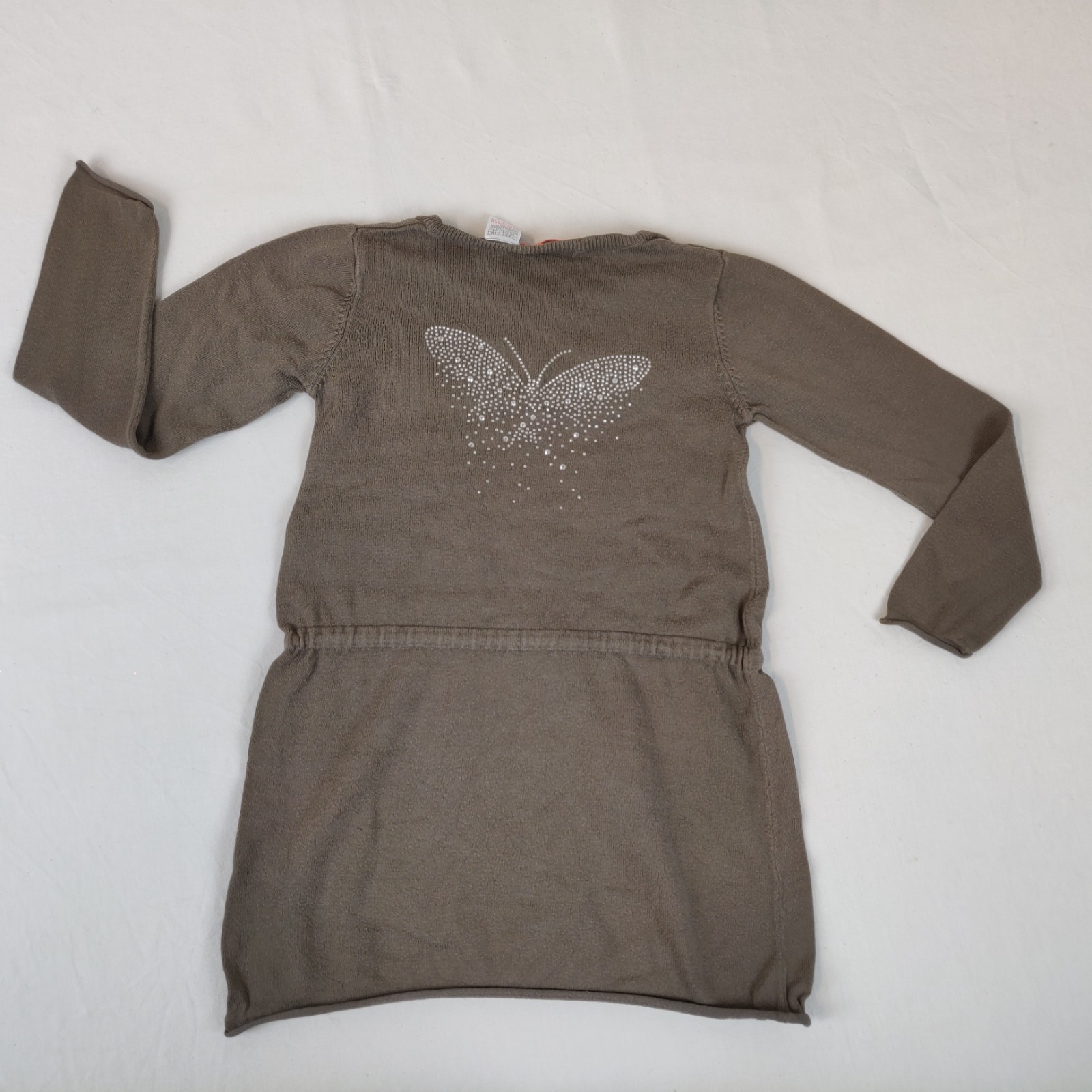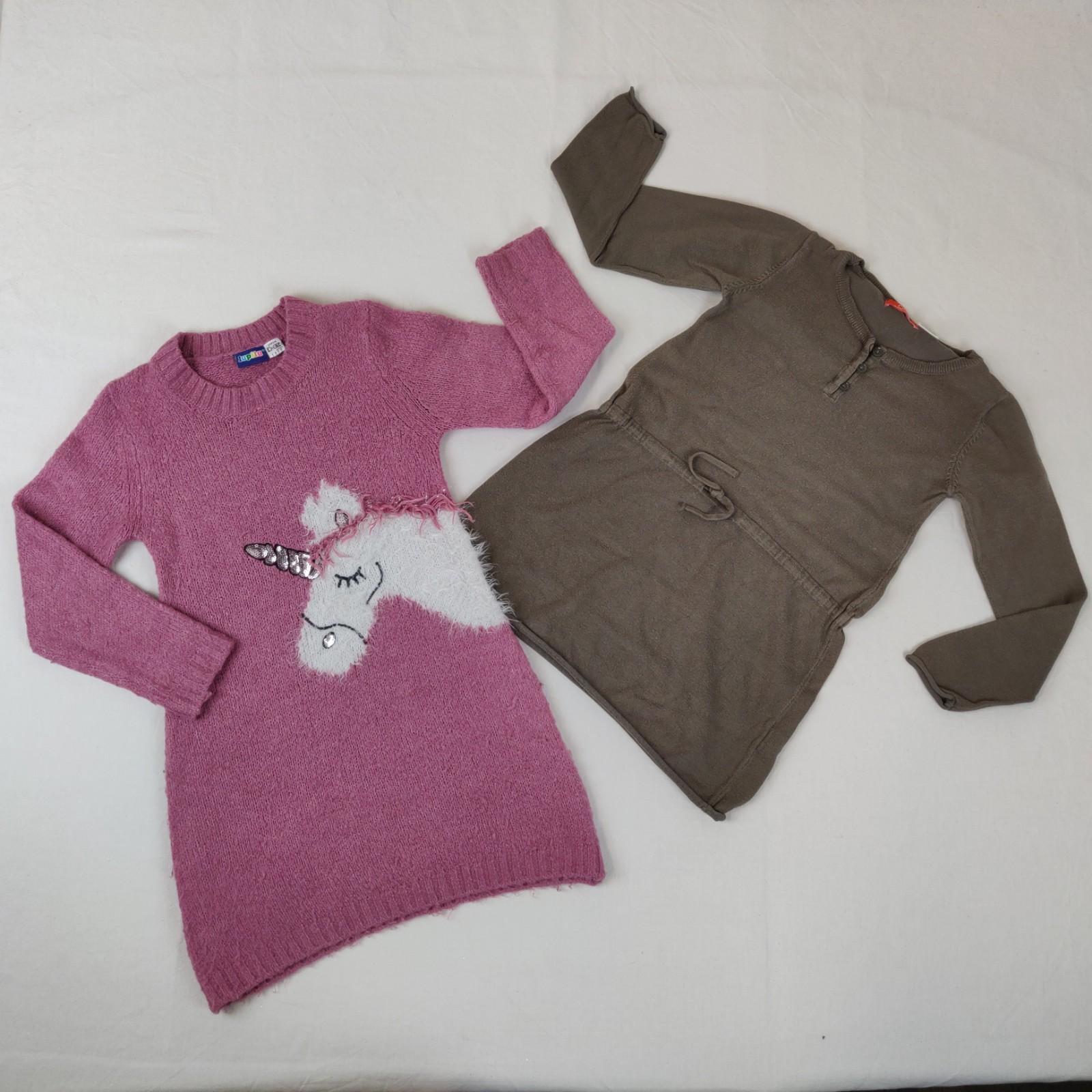 Autres commentaires : Robe kaki Okaou avec fermeture à boutons à l’avant et illustration papillon blanc dans le dos. Robe rose Lupilu avec illustration licorne blanche