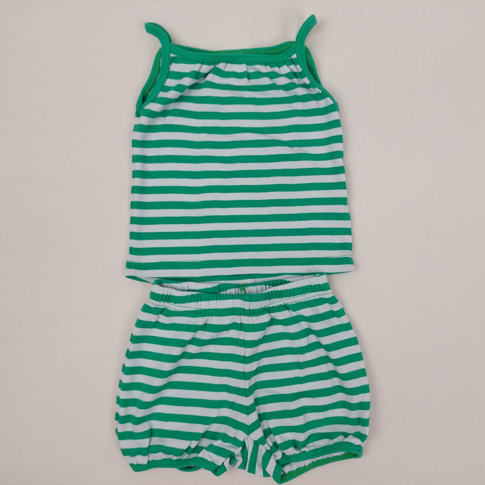 Autres commentaires : Débardeur vert rayé blanc, short vert rayé blanc