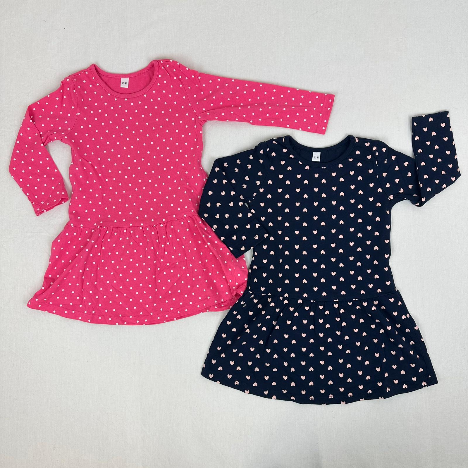 Autres commentaires : 2 robes manches longues rose et bleu foncé avec des petits points rose en dessous.