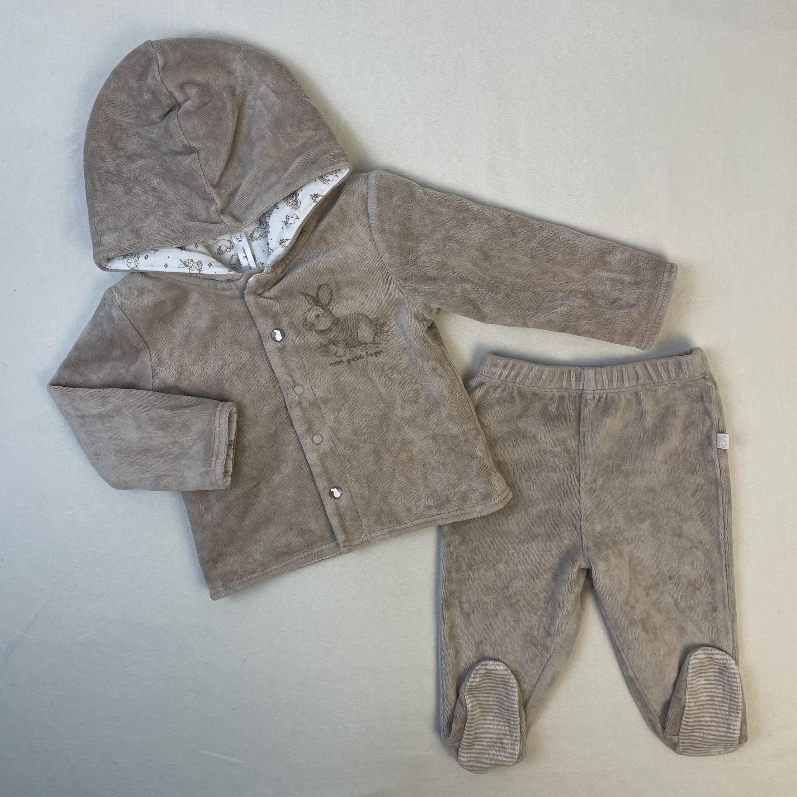 - Ensemble assorti en velours beige de la gamme Newborn Collection.