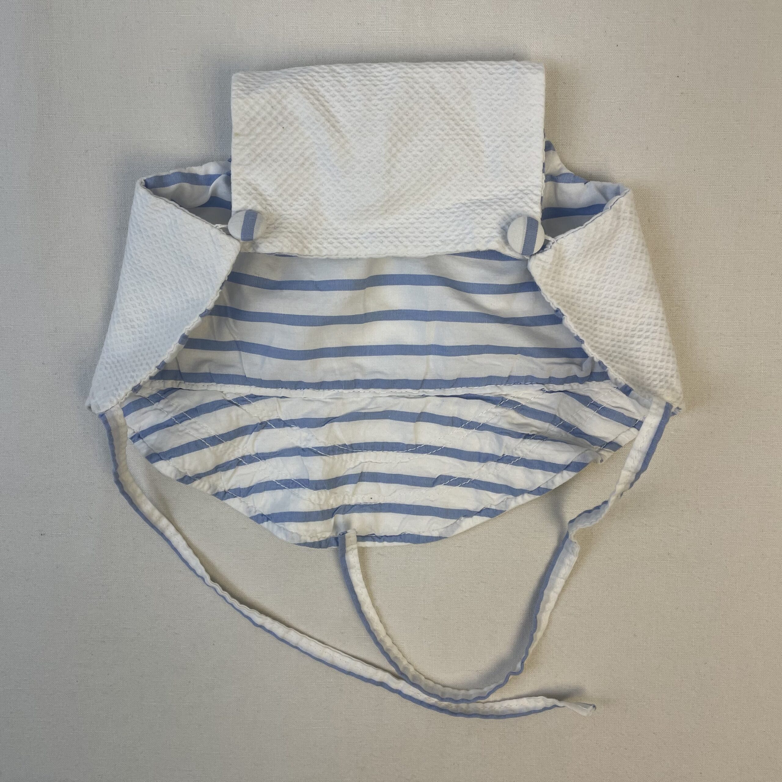 - Chapeau de protection solaire blanc à rayures bleues