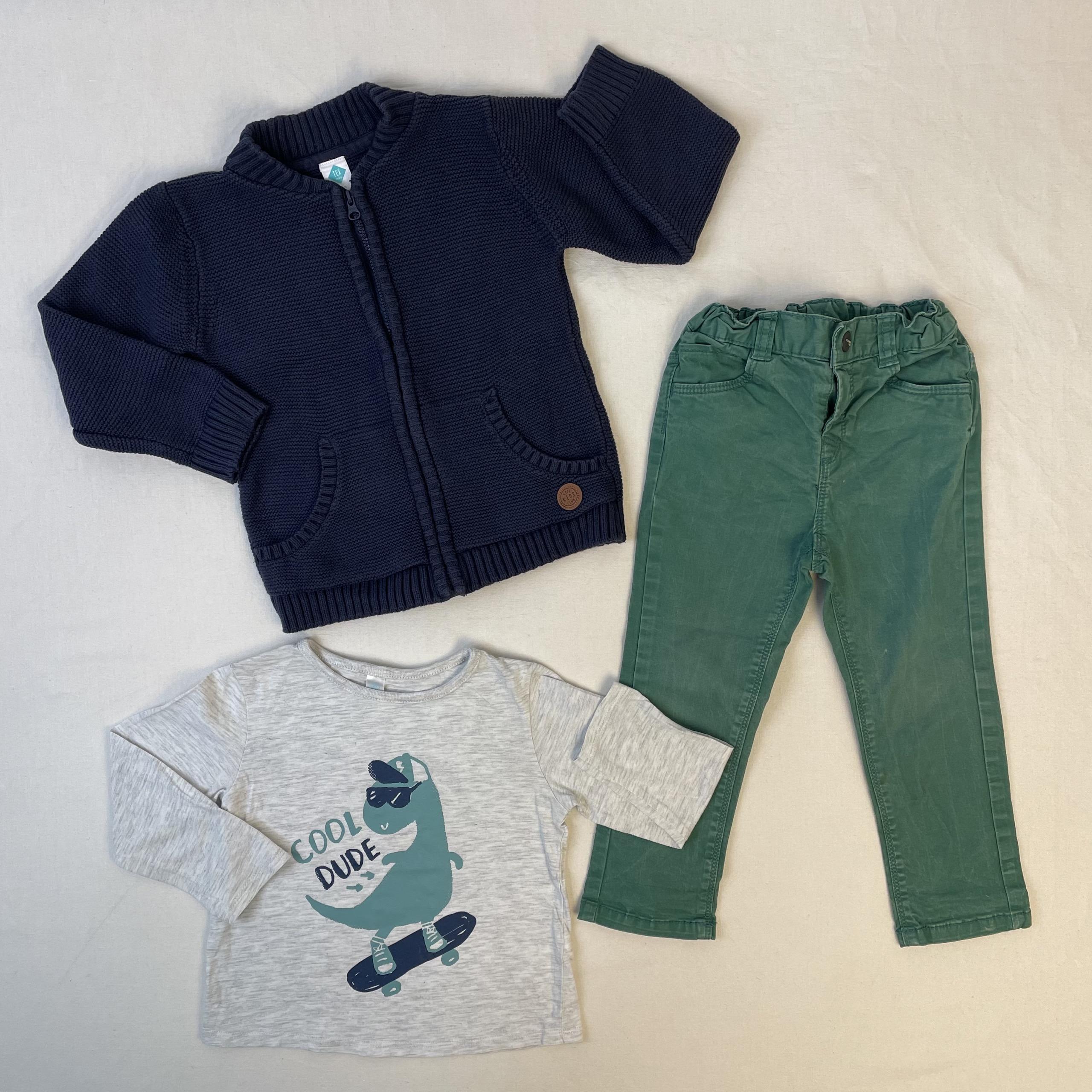 - T-shirt gris clair, col rond, motif dinosaure et inscription « Cool dude ».