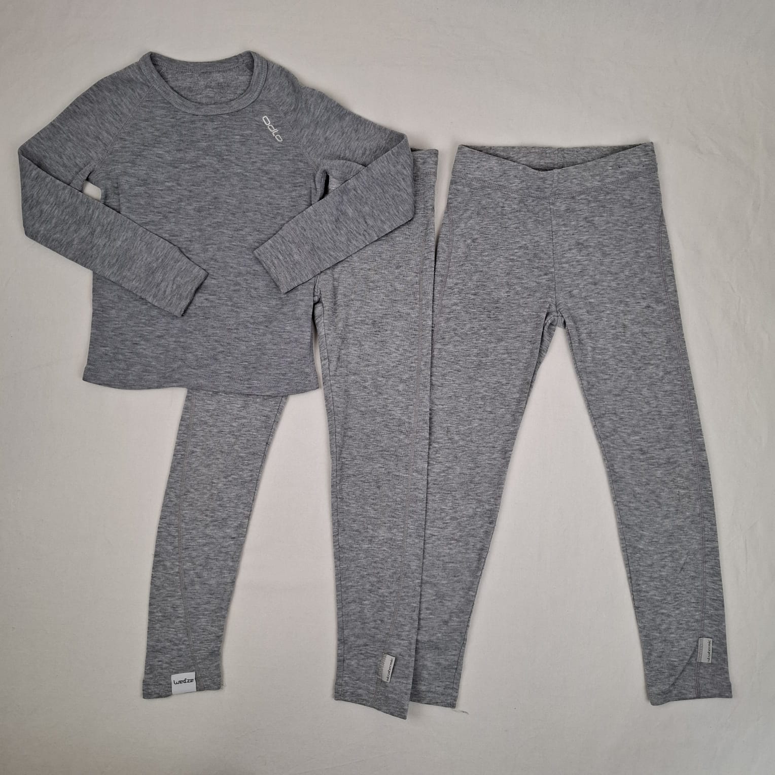 Autres commentaires : Ensemble 3 pièces Wed’ze 6A en coton gris composé de deux pantalons de sport avec taille élastiquée et d’un haut manches longues, col rond.