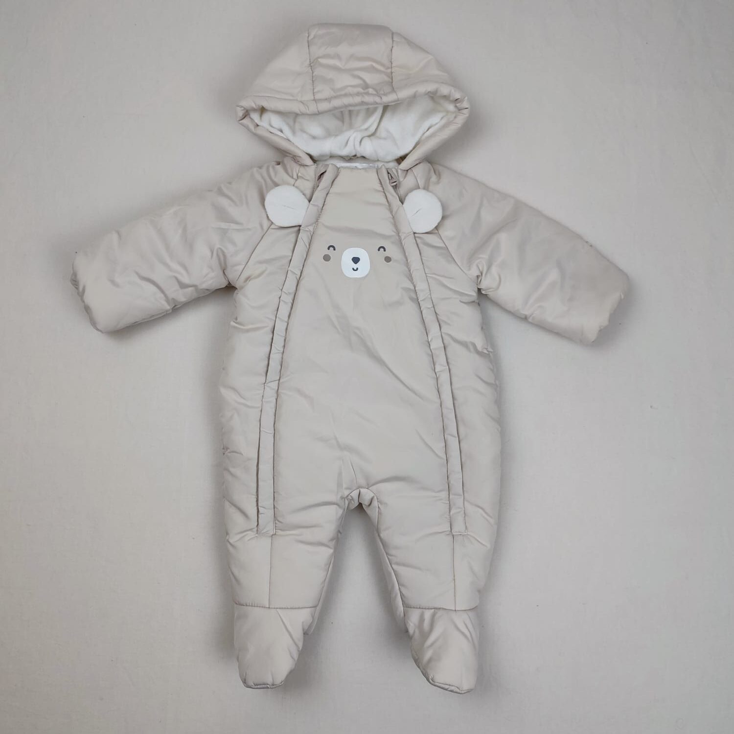 Autres commentaires : Combi-pilote en velours tout doux, bleu polaire, extérieur et garnissage : 100% polyester, doublée en jersey 100% coton blanc rayé de fines rayures bleues, à capuche, avec pieds et moufles intégrées au revers des manches, motif tête d’ours sur le devant, fermeturecomplète par zip à l’avant.