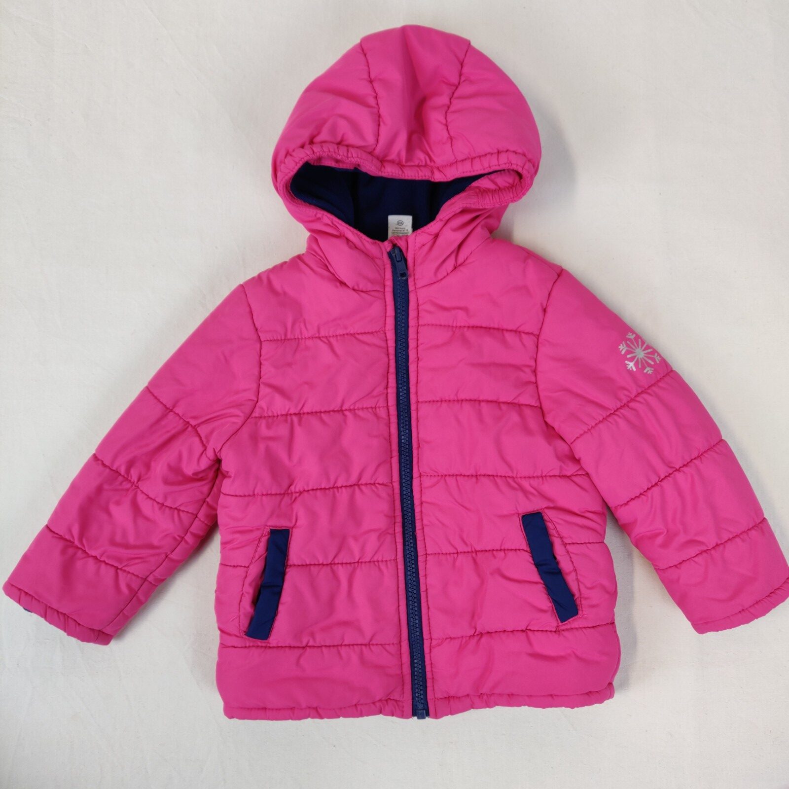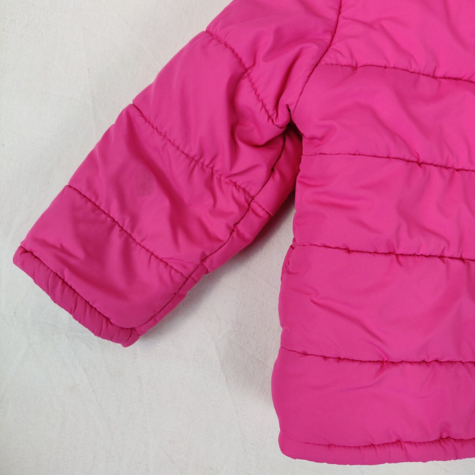 Autres commentaires : Doudoune rose avec capuche doublé de coton à l’intérieur, une fermeture en zip et contient une petite tâche sur la main gauche.