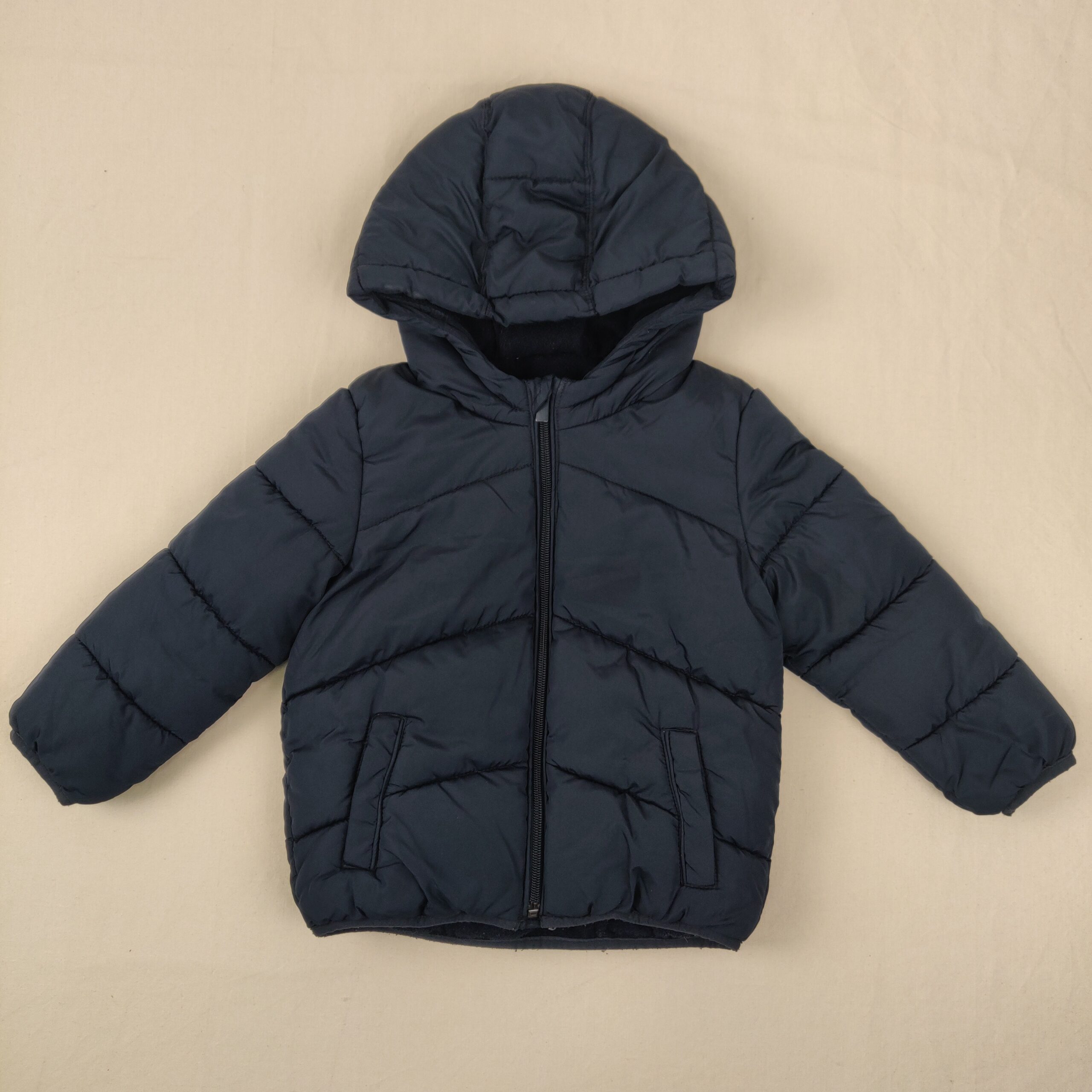Autres commentaires : Doudoune bleue marine avec deux poches avant, interieur type polaire, capuche non détachable.