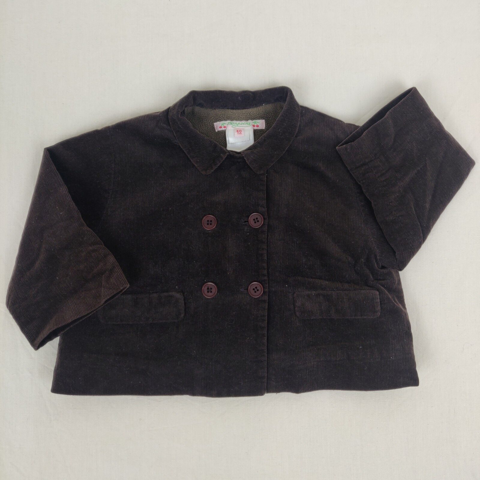 Autres commentaires : Manteau marron avec col chemise et fermé par des boutons.