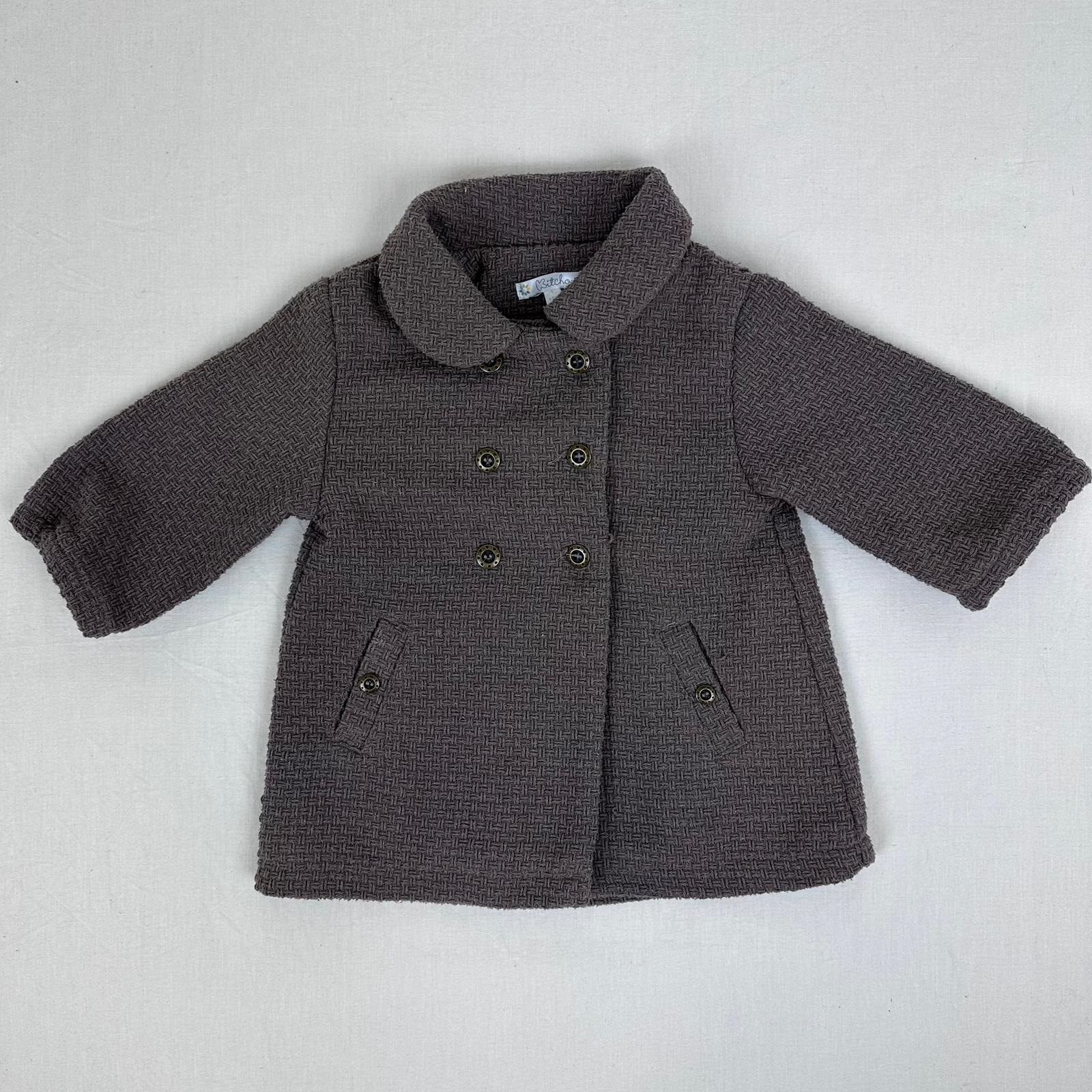 Autres commentaires : 13% laine et doublure 100% coton. Manteau manches longues gris avec col polo fermé par des boutons et une poche latérale.