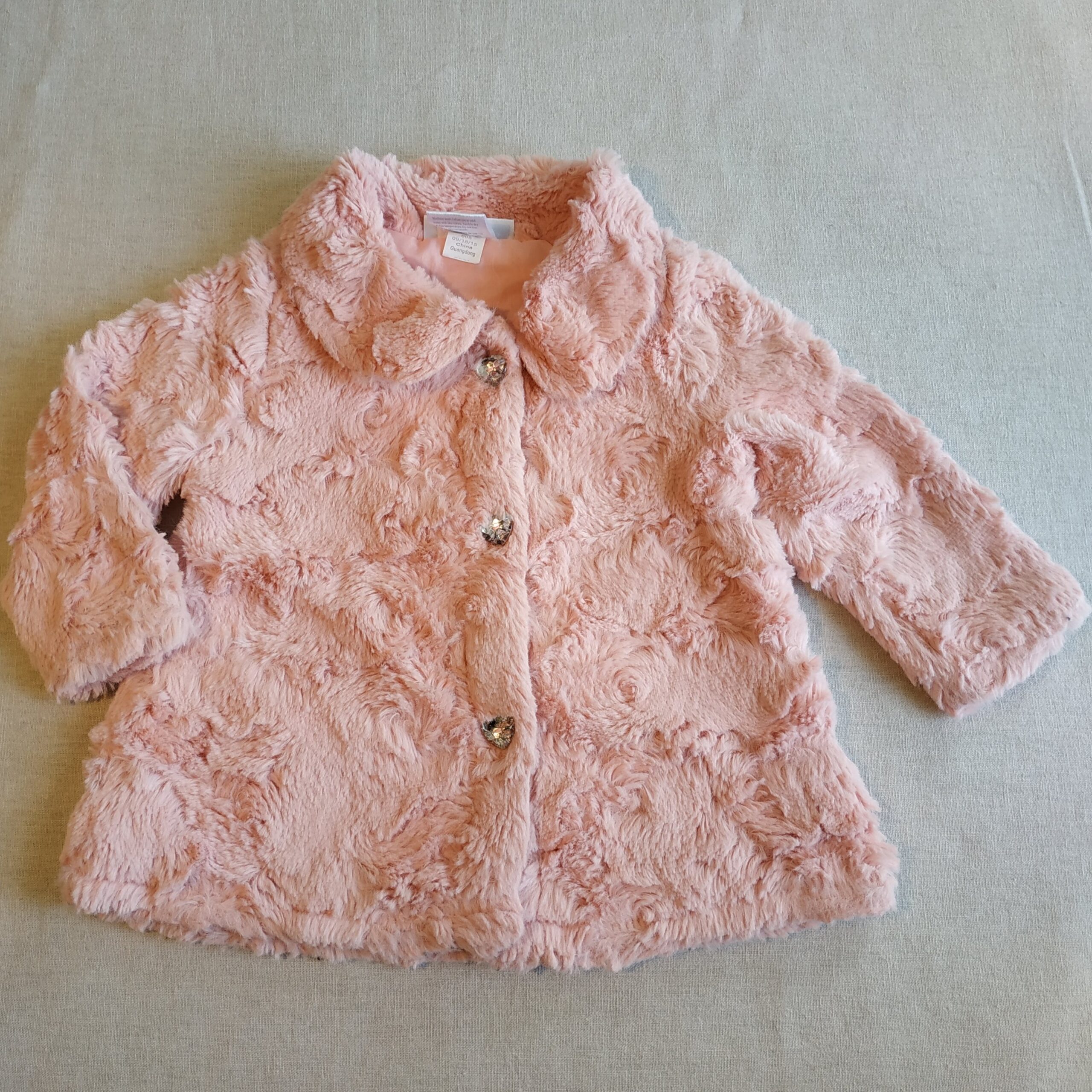 Autres commentaires : Cet adorable petit manteau rose pale imitation fourrure, avec ses trois boutons diamants en forme de coeur et son col claudine, fera sensation. Il est chaud, doux, et so chic !