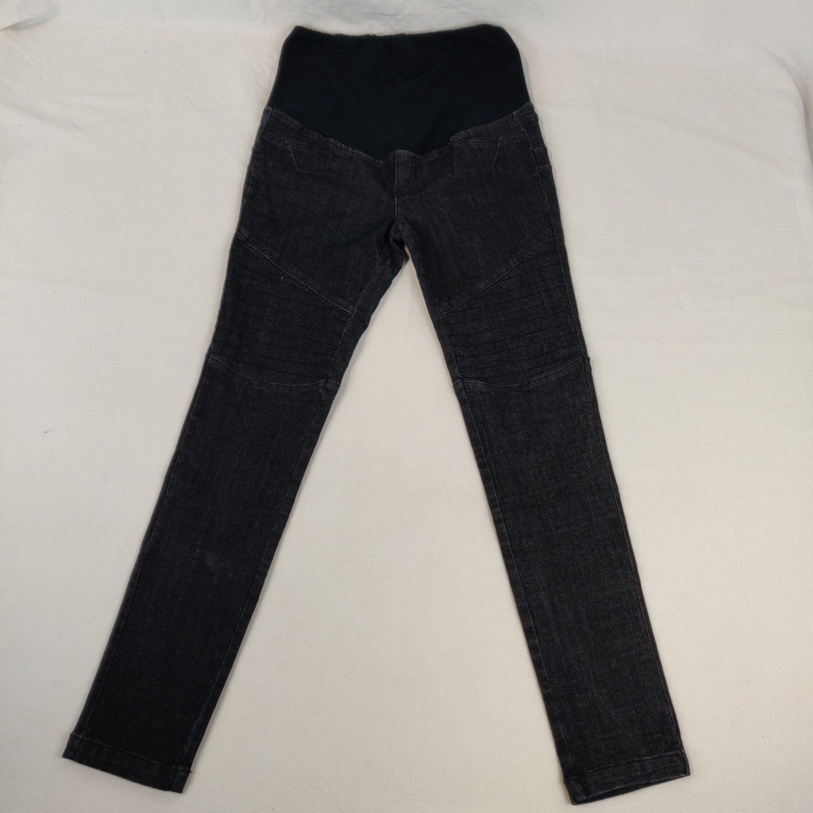 Autres commentaires : Jean en denim gris en thracite Bandeau élastique noir. 2 poches latérales et 2 poches arrières. Passants pour une ceinture. 20% polyester et 10% de viscose.