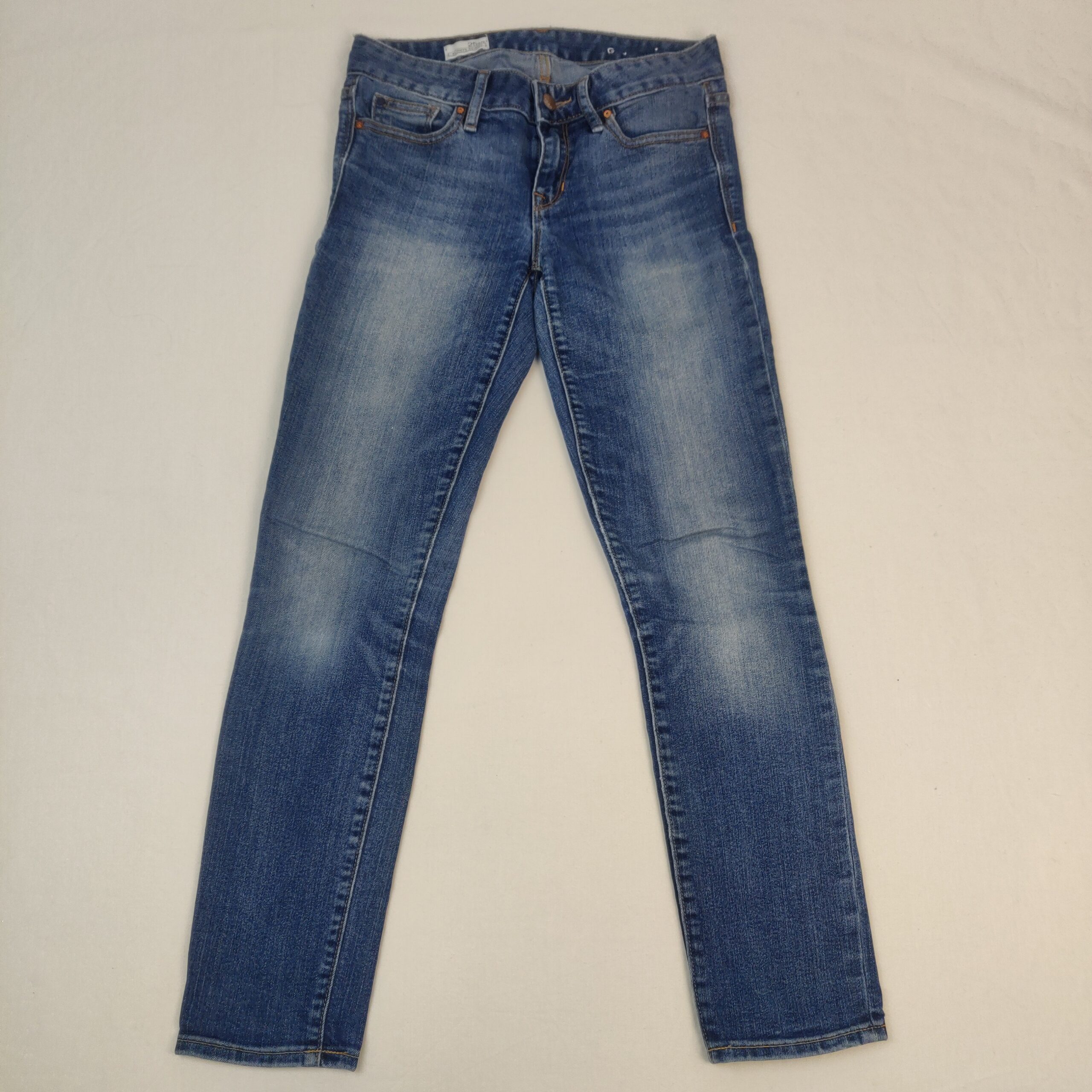 Autres commentaires : Jeans taille 25W, équivaut à du 12-13 ans, 12% Polyester, 1% élasthanne, en denim bleu, style skinny fit, femeture par bouton et zip.