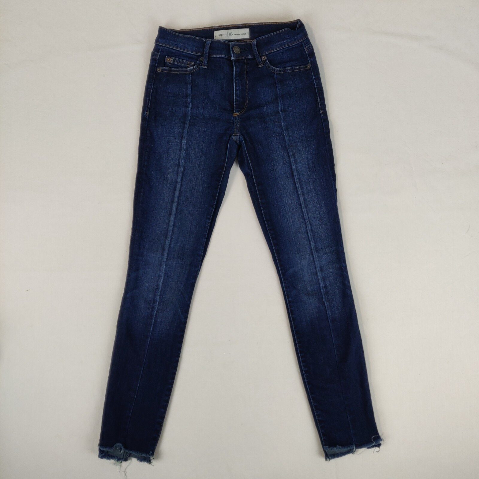 Autres commentaires : Jean bleu foncé avec des poches devant et derriére , une fermeture zip . Contient 87% de coton , 12% de polyester et 1% de d’élasthane , taille 24, correspond à taille FR 32, tour de taille 62 cm.