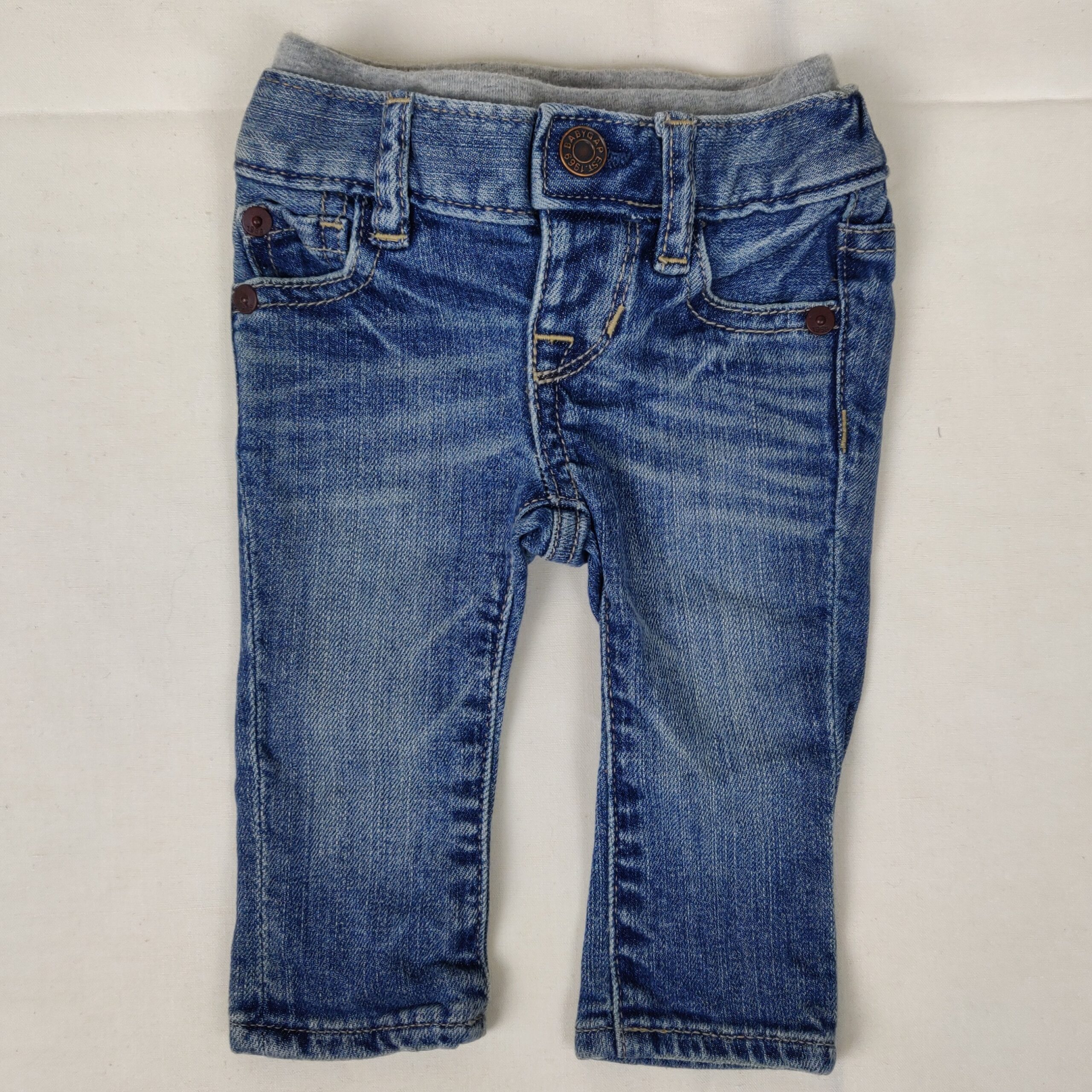 Autres commentaires : 1% Elasthanne. Jean avec ceinture en coton gris élastique. Bouton pression à la taille.