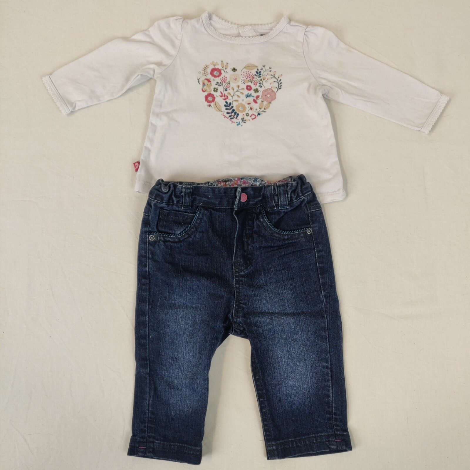 Autres commentaires : 1% élasthanne. Jean en denim bleu foncé. Taille élastique. 2 poches latérales et 2 poches arrières. Marques légères d’usure au niveau des jambes. Un t-shirt à manches longues Sergent Major blanc offert. Une tâche près du col.