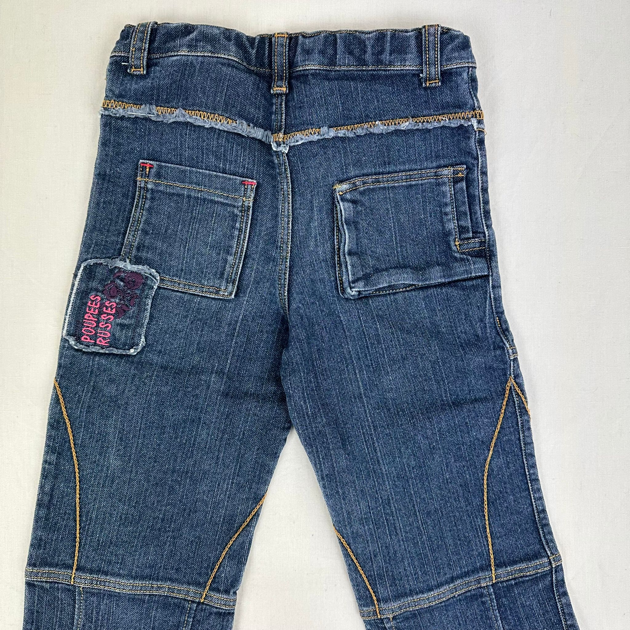 Autres commentaires : 19% polyester et 2% elasthanne. Jean bleu foncé, taille élastiquée et ceinturée avec 2 poches latérales chacunes et 2 dérrière.