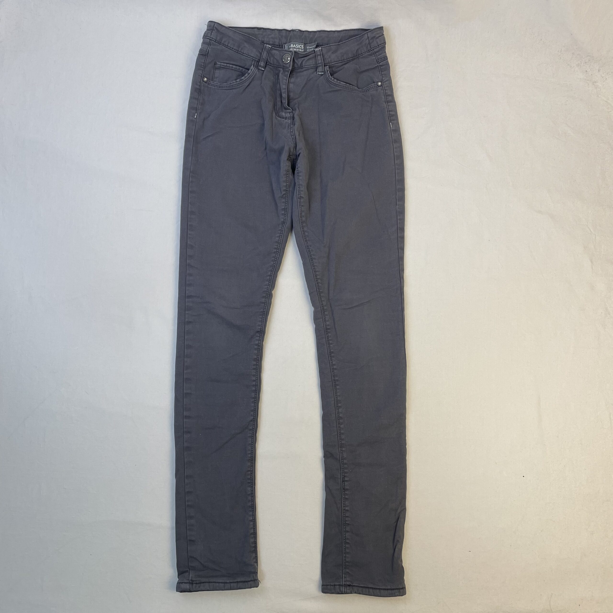 - Jeans gris, fermeture devant par zip et par crochet métallique, doublure en polaire grise 100% polyester, ceinture ajustable par élastique intérieur.