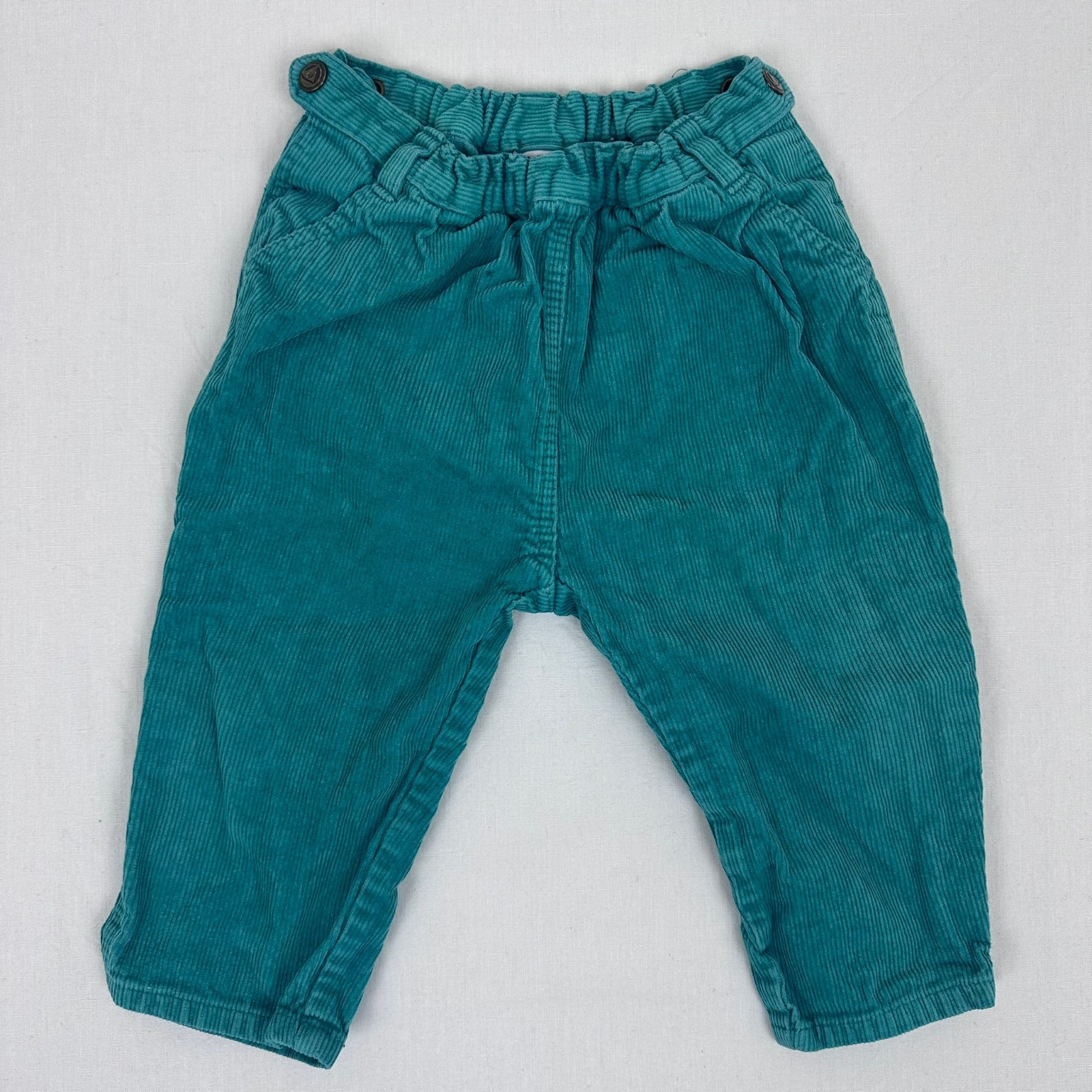Autres commentaires : Jean bleu menthe avec taille élastiquée et un bouton pression pour le 2 côtés du jean.