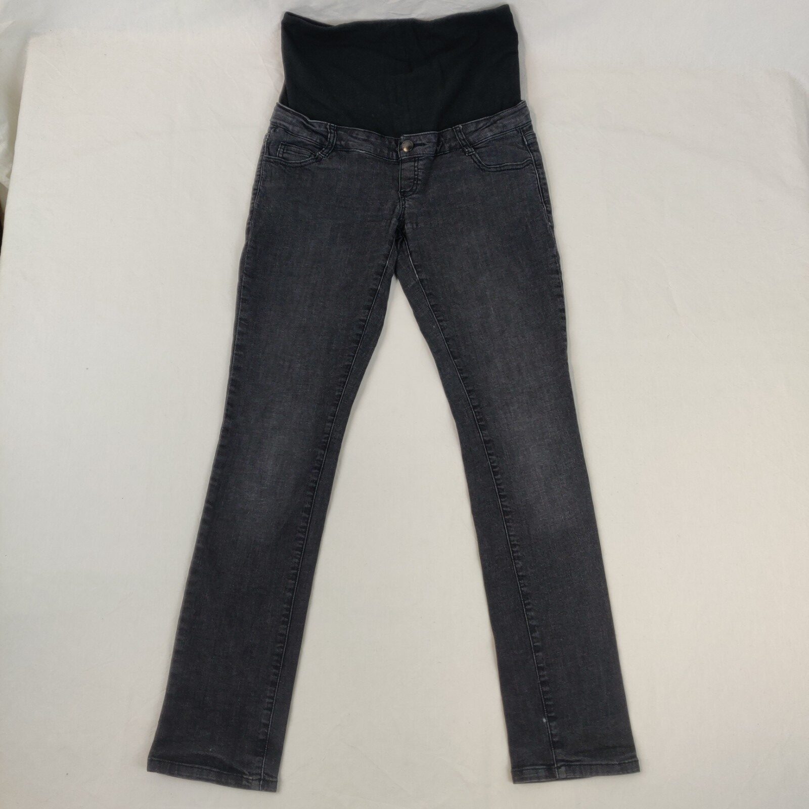 Autres commentaires : 2% élastahanne. Jean en demin noir. Taille élastique avec bandeau élastique. 2 poches latérales et 2 poches arrières. Passants pour une ceinture. Légères marques d’usure au niveau des jambes.